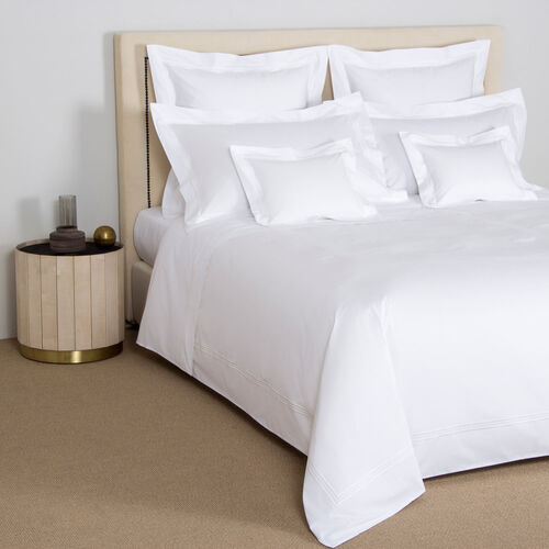 Soft and smooth with high shine, the Triplo Bourdon Sham is crafted from pure cotton poplin and embellished with a three-line embroidery