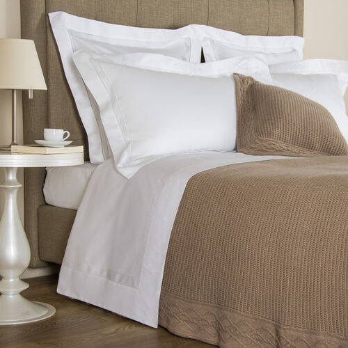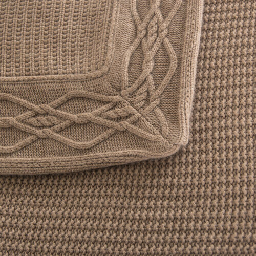 A luxurious thick knit pure cashmere blanket embellished with a braided border.