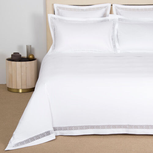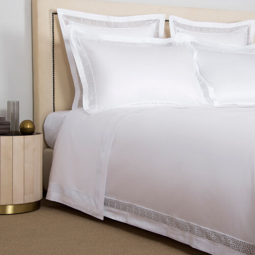 Offering an elegant statement in minimal, romantic design, the Forever Lace duvet cover features warm and silky cotton sateen with inserted shagreen macramé lace along the borders. The subtle and delicate embroidered lace adds a luxurious touch to your bedroom.