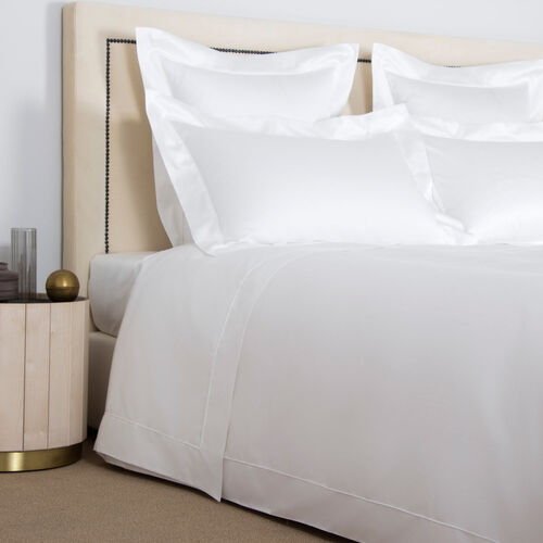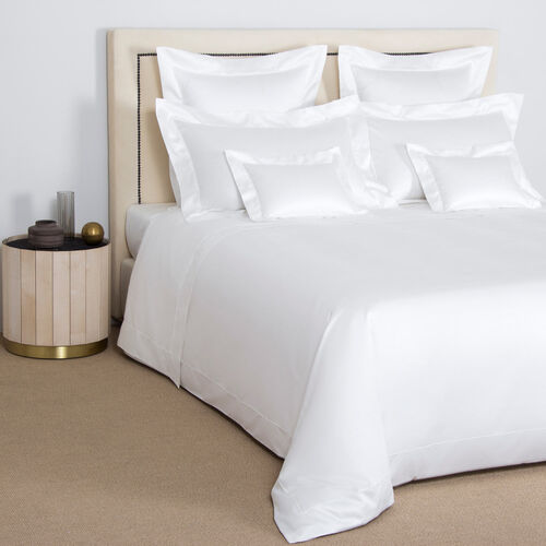Soft and smooth with high shine, this cosy long-staple cotton sateen duvet cover is finished with an elegant shadow stitch. 100% cotton. Made in Italy.