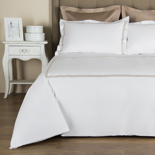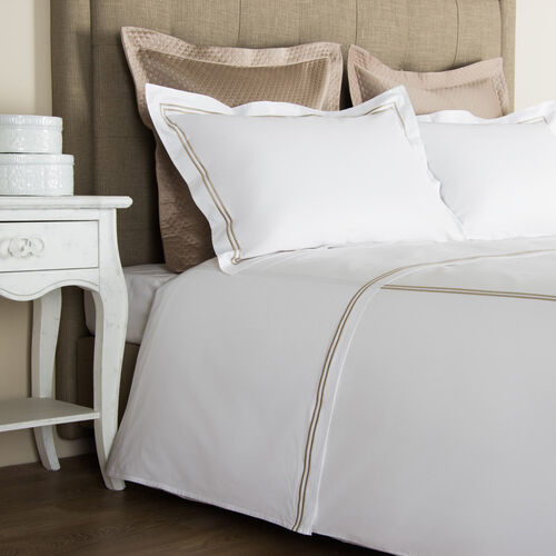 The Hotel Classic Duvet Cover from Frette is composed of crisp cotton percale and features two embroidered distinctive borders. Subtle colours effortlessly complement every bedroom interior.