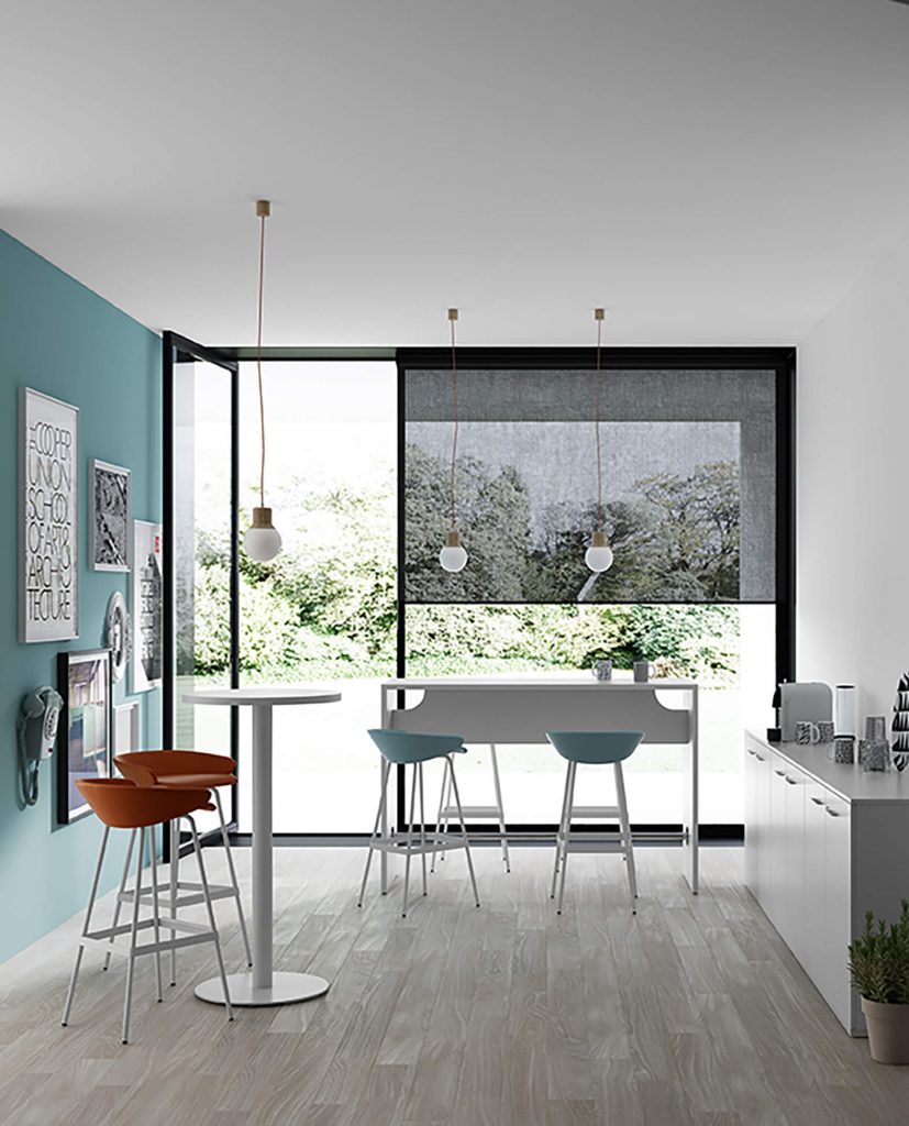 I tavoli di altezza 105 cm diventano luoghi di ispirazioni più che semplici postazioni di lavoro se inseriti all’interno di uffici. Ideali come punto di incontro e comunicazione, favoriscono la collaborazione e al contempo l’efficienza lavorativa. Possono essere utilizzati anche per brevi meeting da svolgere in piedi e promuovono il cambio spontaneo di postura che si riflette positivamente sulla salute.