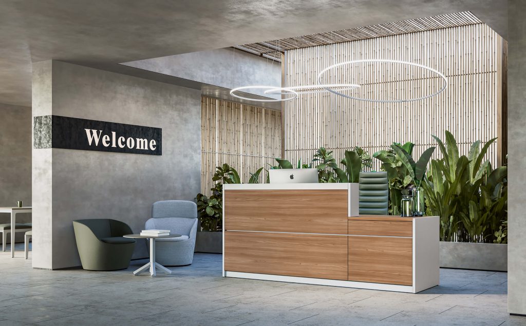 I piani reception realizzati in nobilitato di spessore 28 mm, sono dotati di top access per l’elettrificazione della postazione di lavoro.