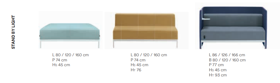 Stand by Pouf è interamente rivestito con struttura interna in EPS (polistirene espanso sinterizzato) e materiale ligneo, imbottito in poliuretano flessibile e rivestito in tessuto o finta pelle.