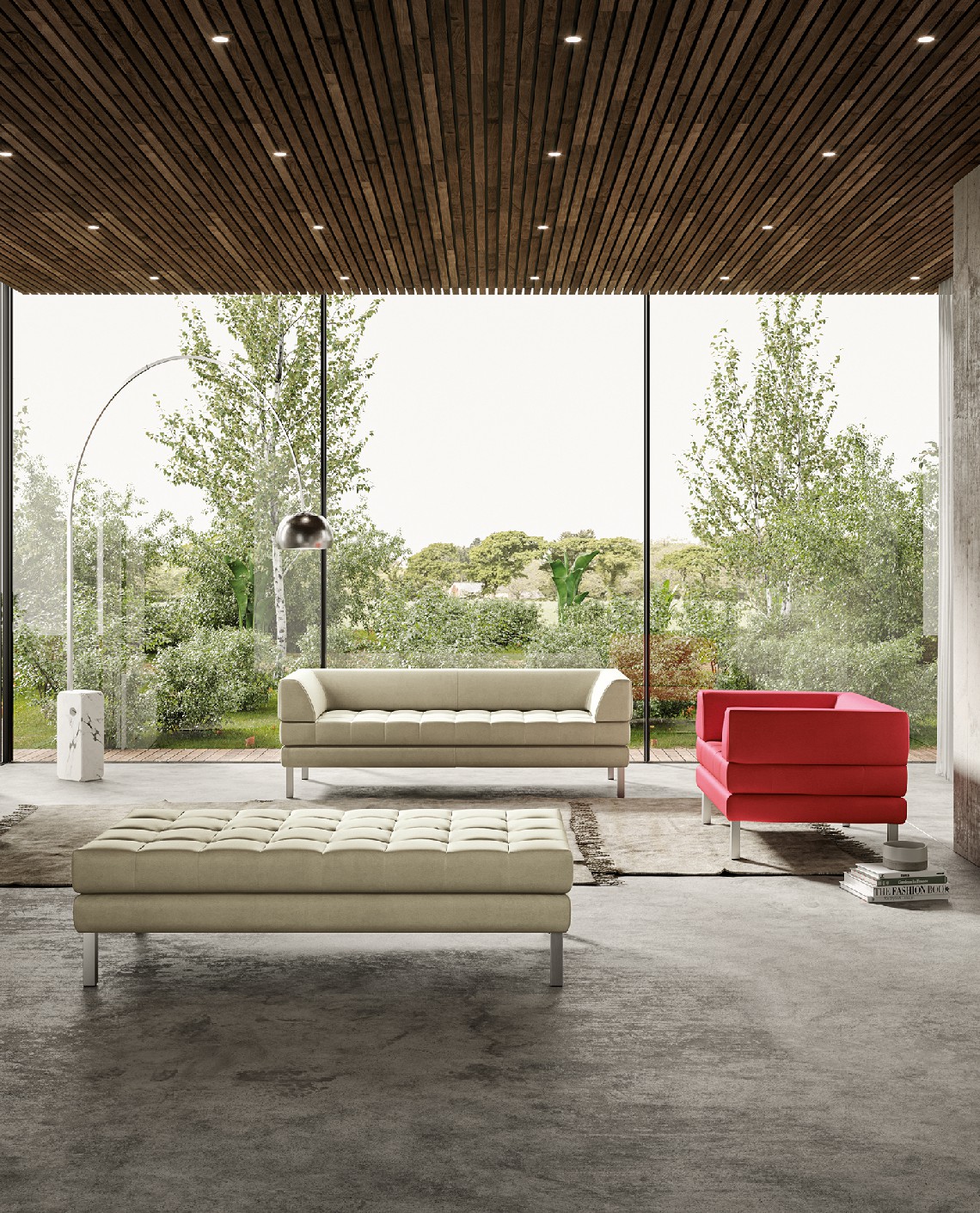 Il programma Moma ha affrontato e sviluppato questo tema stilistico proponendo un ricco assortimento di soluzioni di divani e panche con linee moderne ed essenziali, giocate su di un vago sapore retrò conferito dalla lavorazione capitonné che connota le sedute di divani, poltrone e panche attesa.