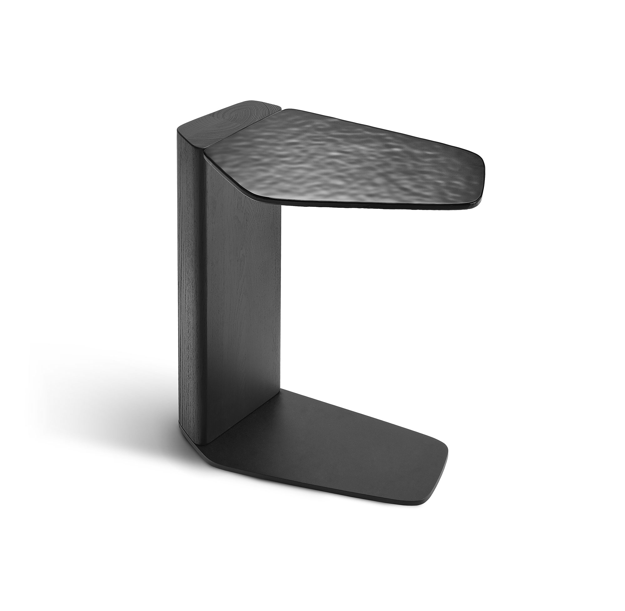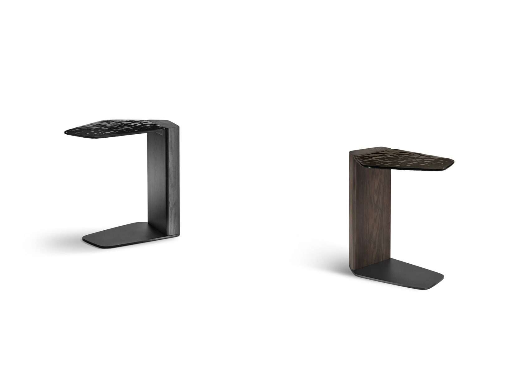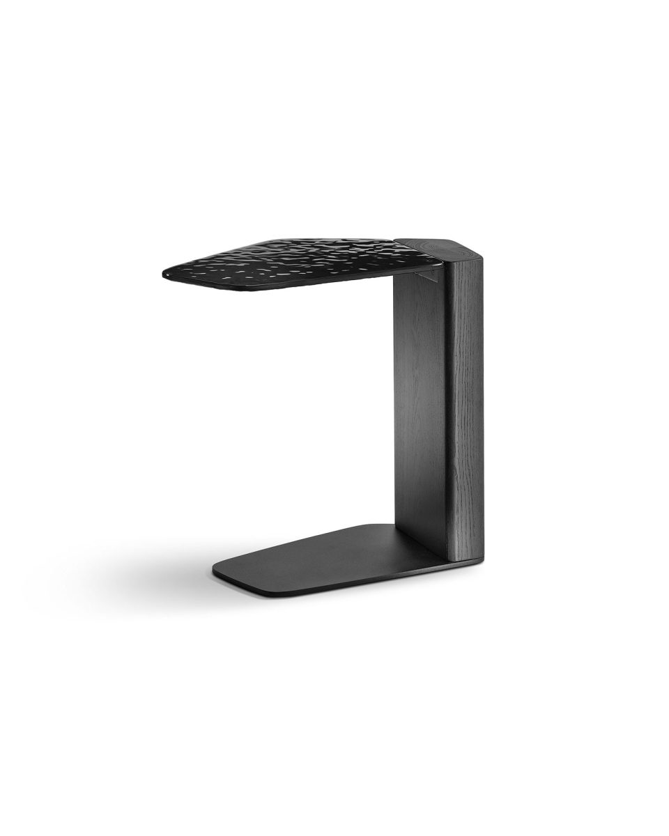 Tavolino di servizio con piano in vetro da 10mm fuso a gran fuoco, retroverniciato Testa di Moro oppure Nero.