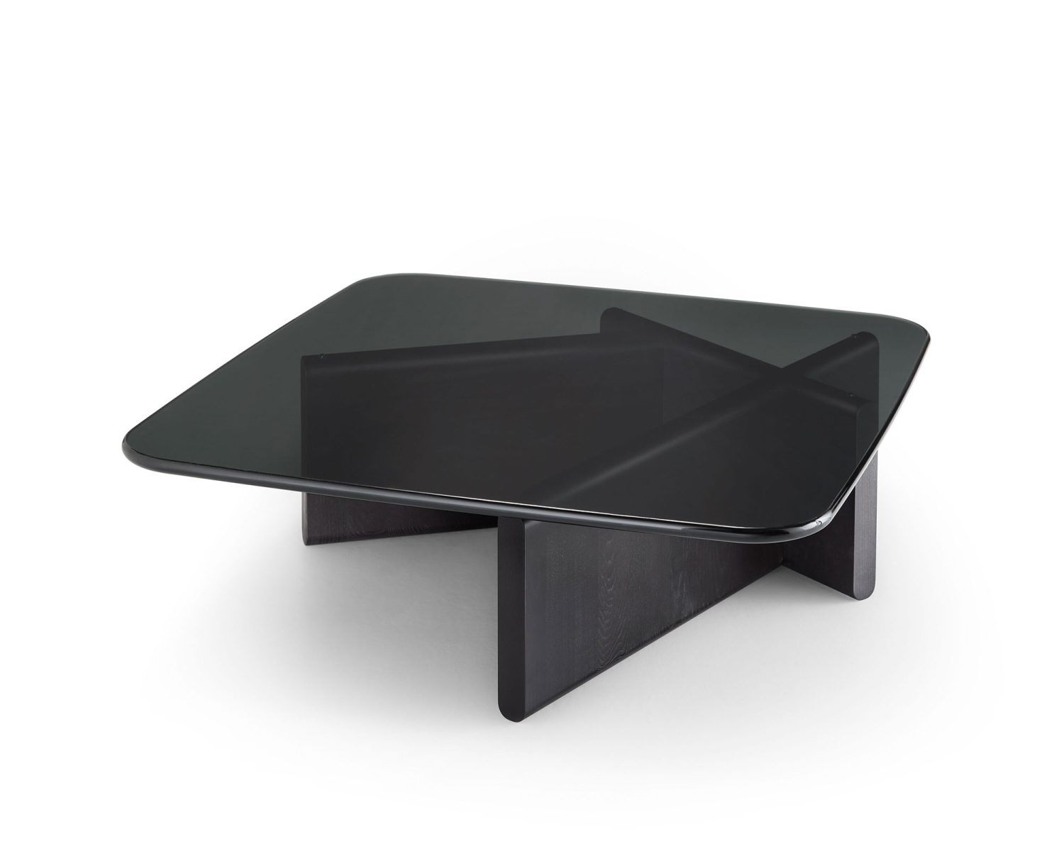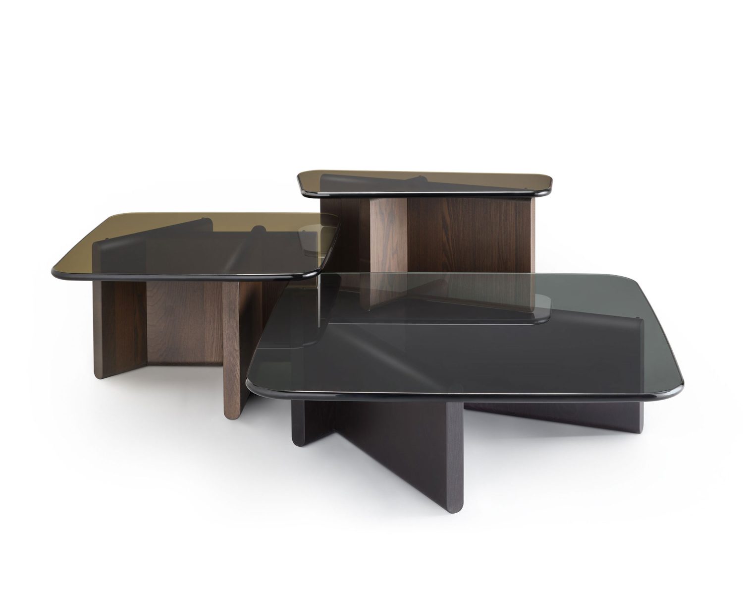 Tavolino con piano in vetro fumè o bronzo stratificato