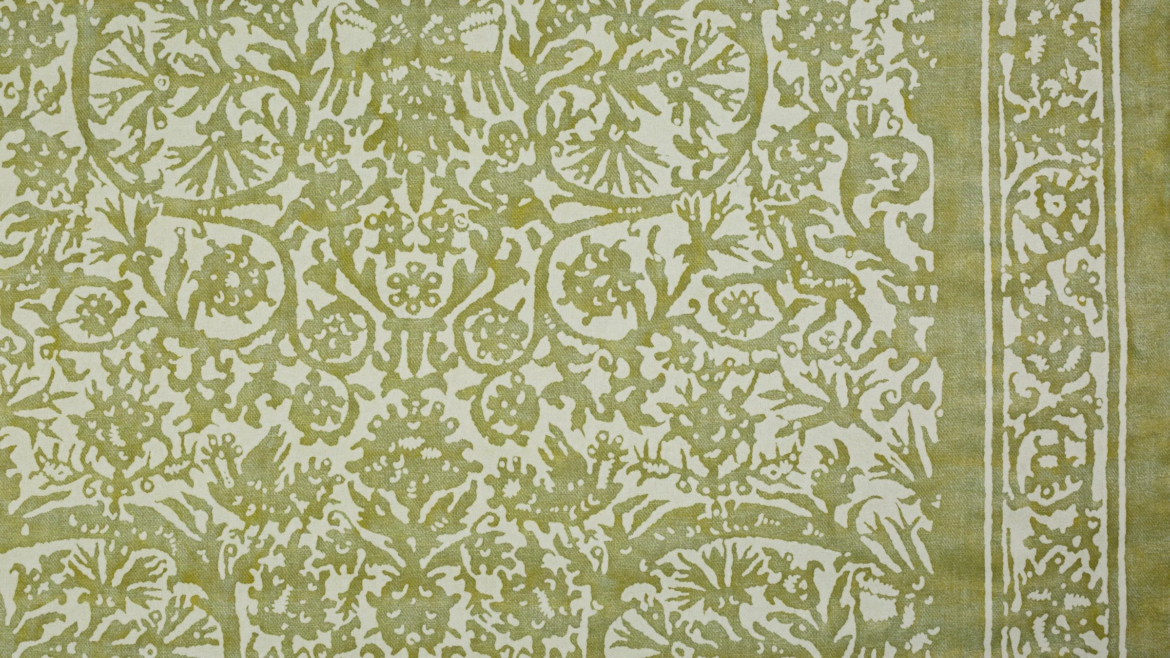 The Italian composer Giovanni Battista PERGOLESI burned his candle brightly, although briefly. This 18th-century design, with English influence, celebrates the comic characters and scenes from everyday life in PERGOLESI’s opera buffa. Bustling with creeping and intertwining movement, PERGOLESI’s dense scrolling seems to morph before your eyes.