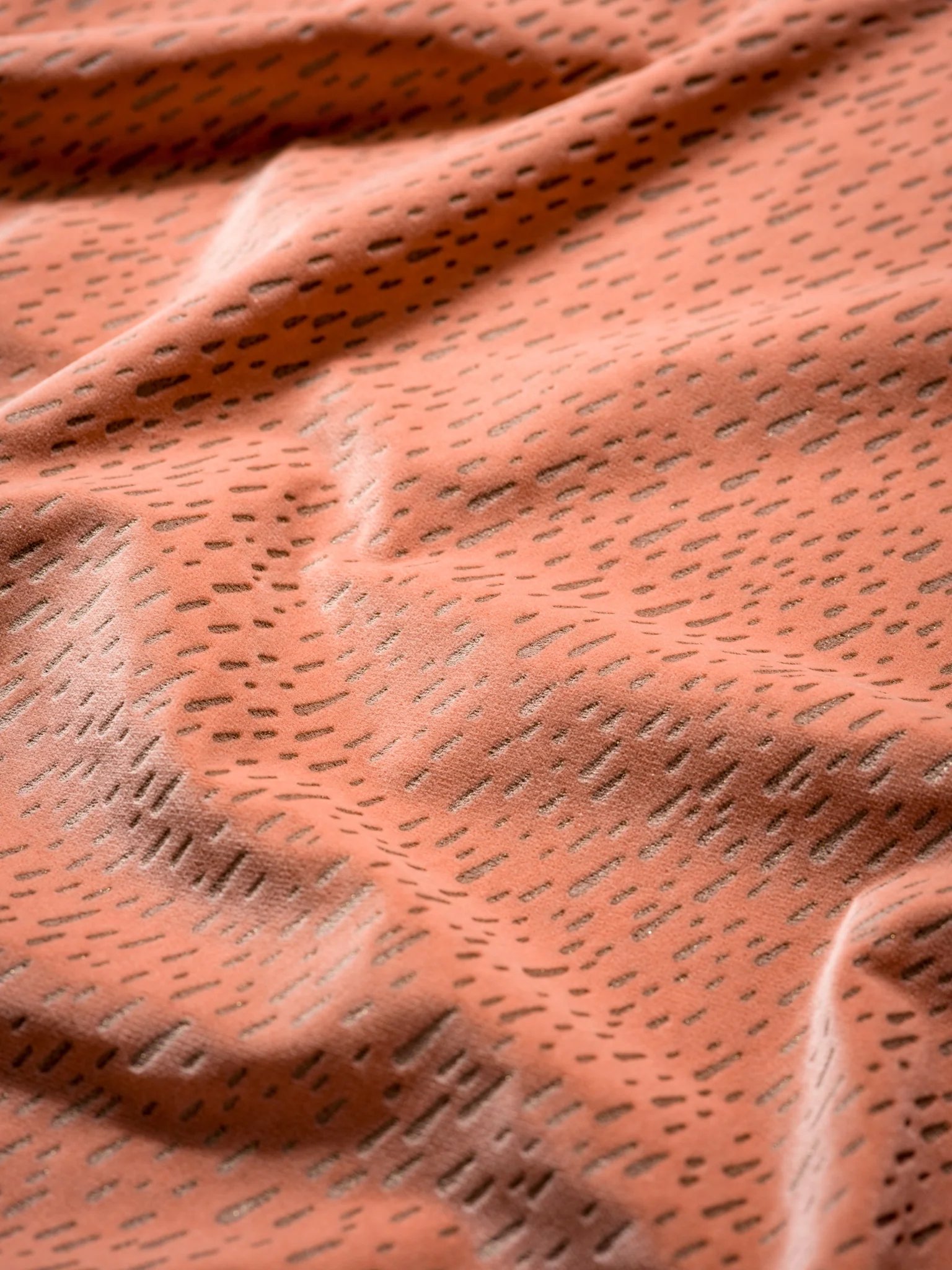 Meaning “rain” in Italian, this pattern takes inspiration from Fortuny’s Cilindri pattern, modifying the shape and size of the elements to add depth and movement. A testament to the charm of Venice, it serves as a reminder of the city’s state of constant beauty, no matter what the elements may be.