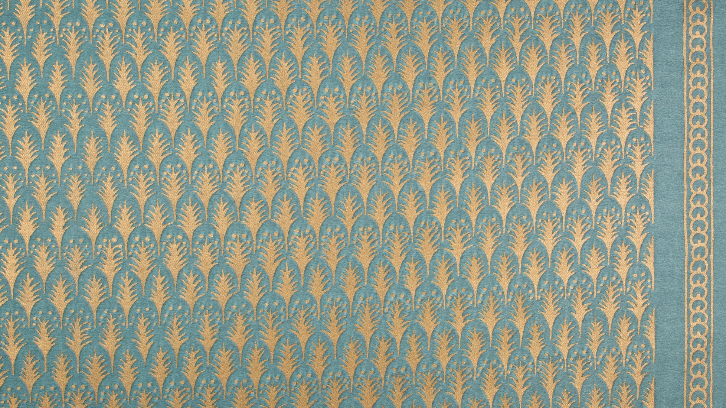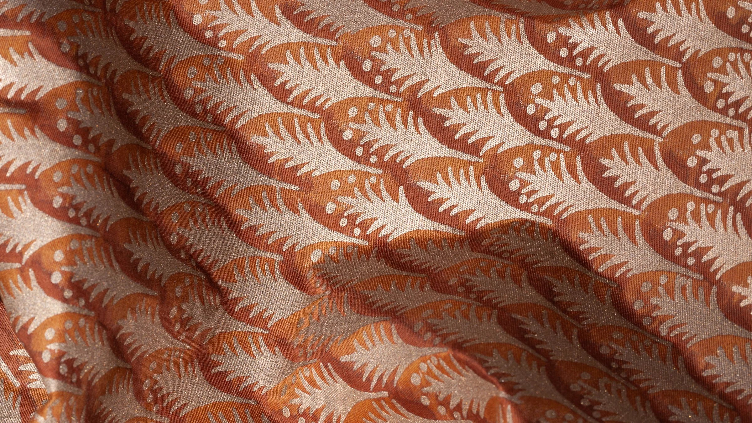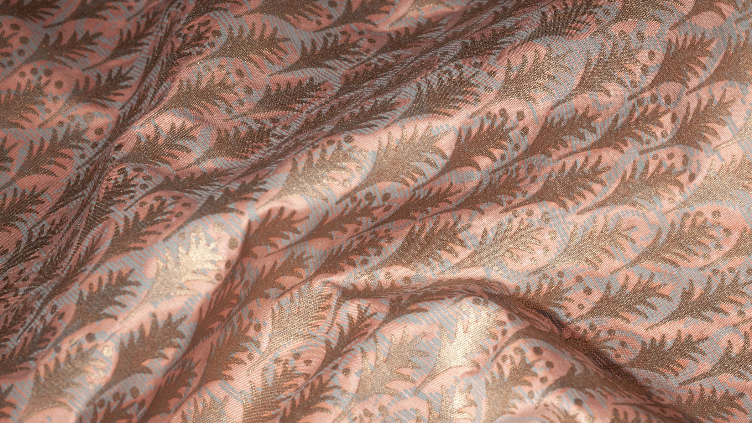 PIUMETTE, Italian for feathers, is a small-scale geometric motif of fanned-out feathers. The Persian-inspired design lauding freedom and transcendence through its connection with birds and flight is one of Mariano Fortuny’s earliest patterns.
