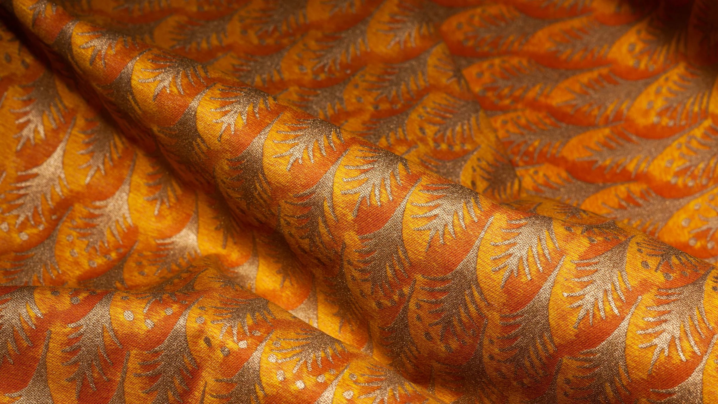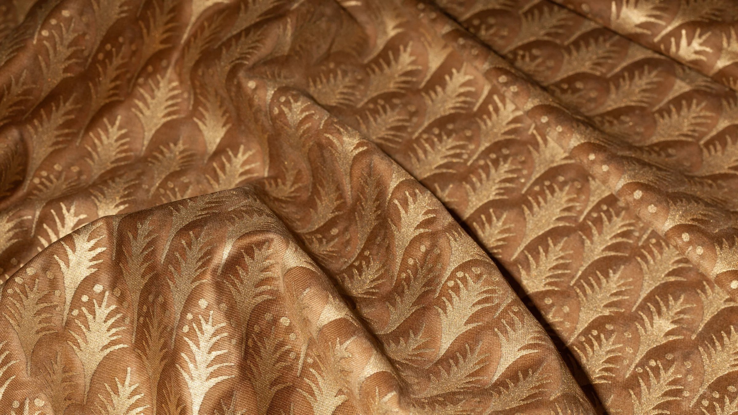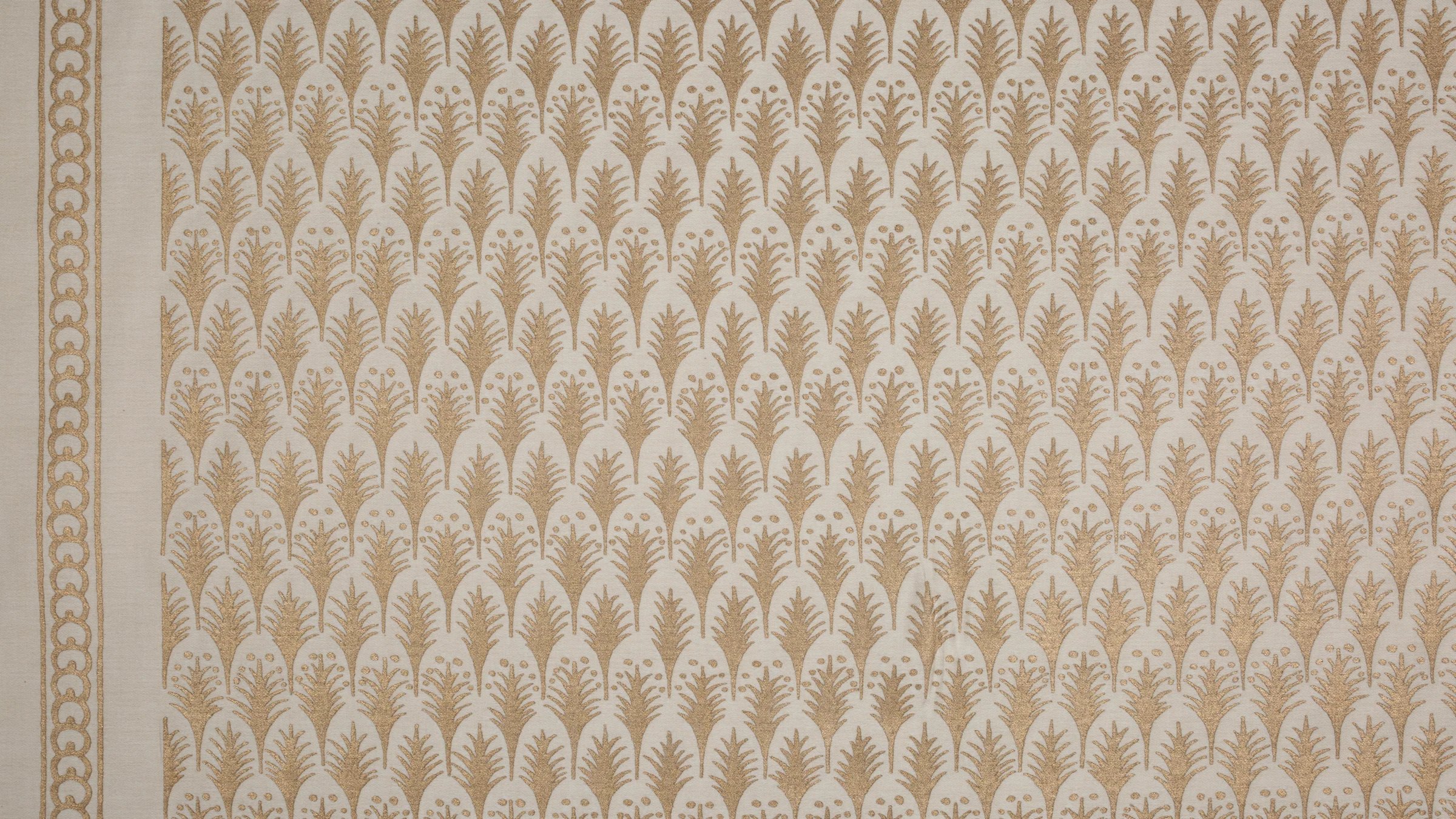 PIUMETTE, Italian for feathers, is a small-scale geometric motif of fanned-out feathers. The Persian-inspired design lauding freedom and transcendence through its connection with birds and flight is one of Mariano Fortuny’s earliest patterns.