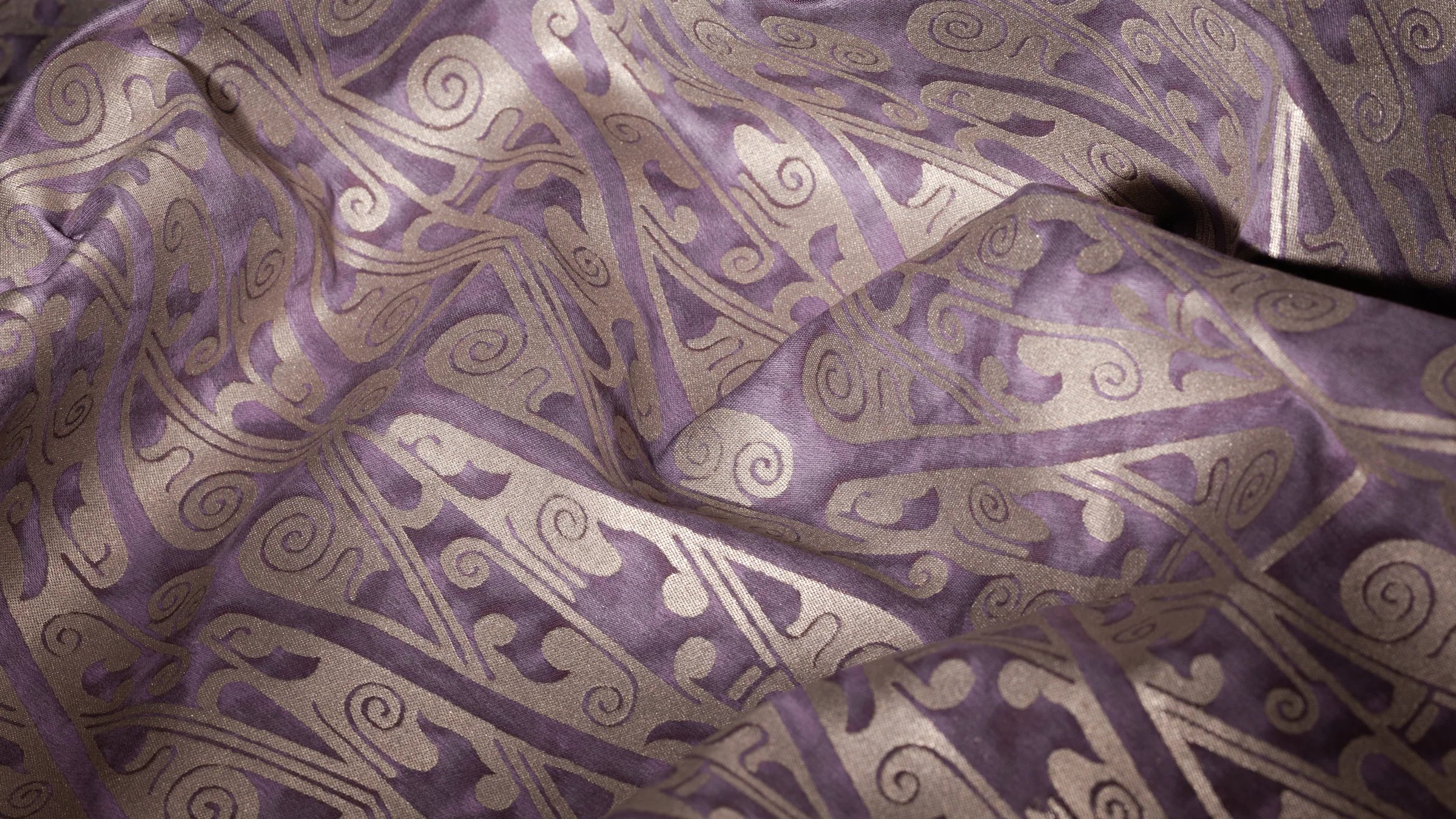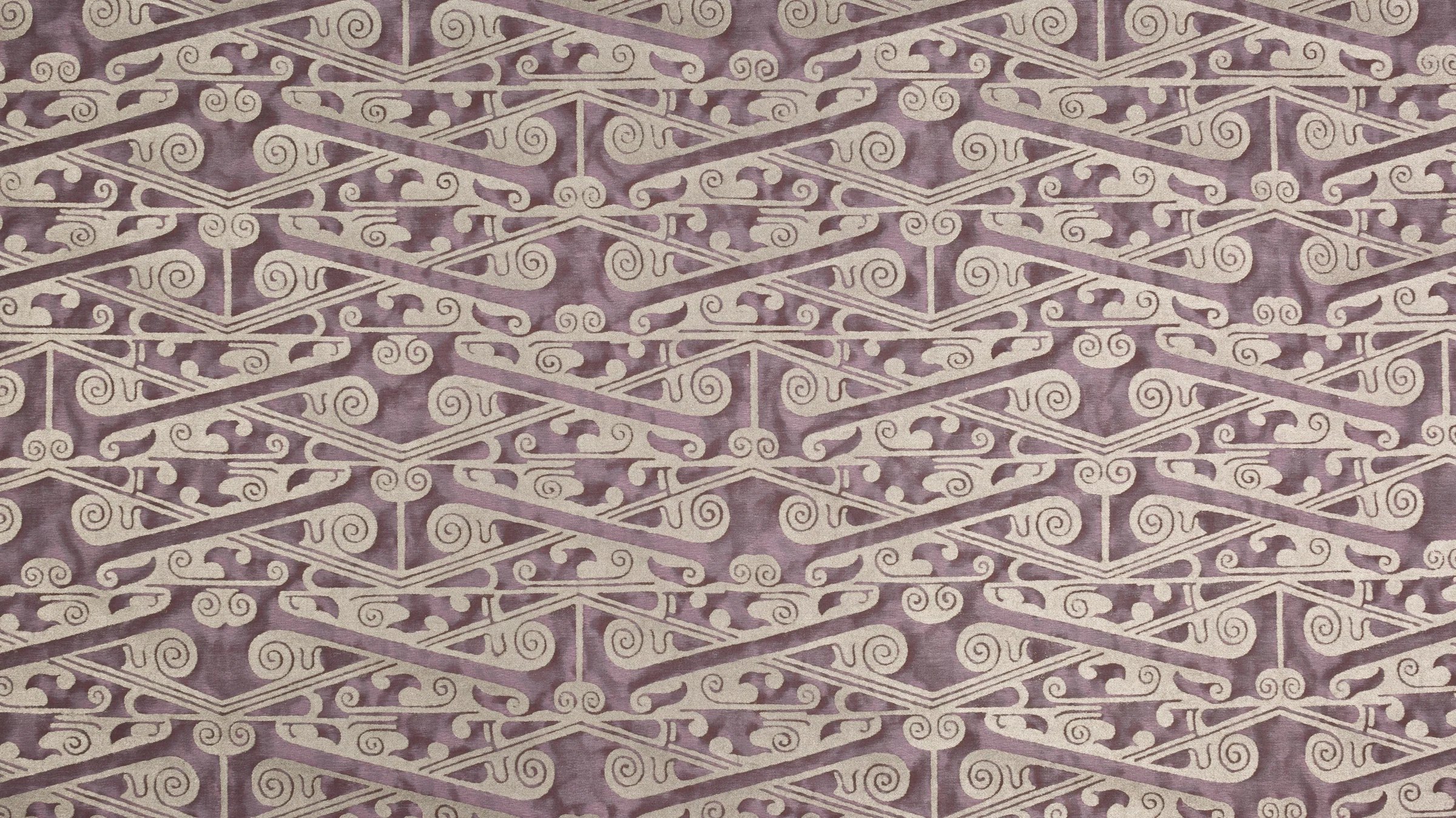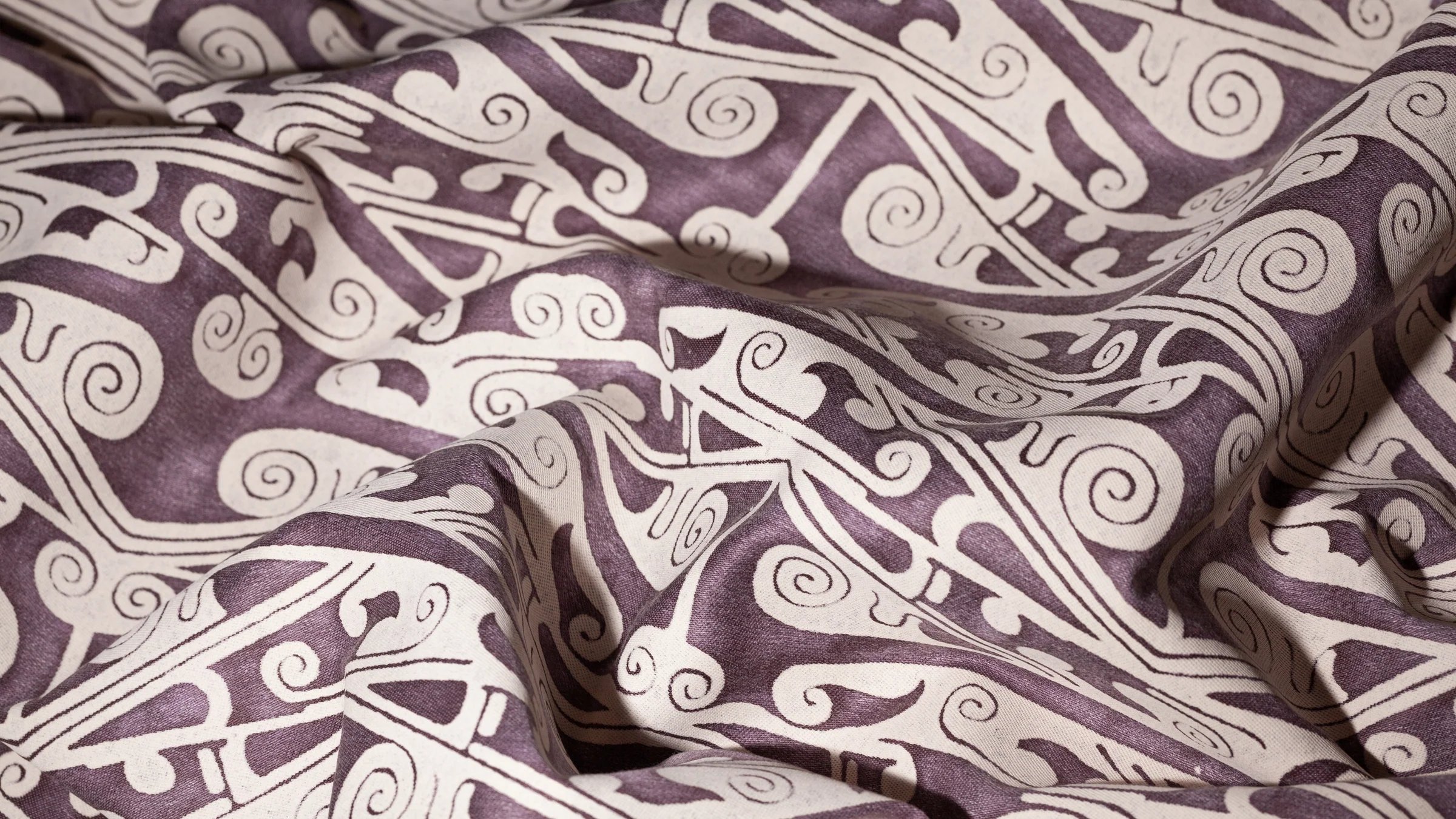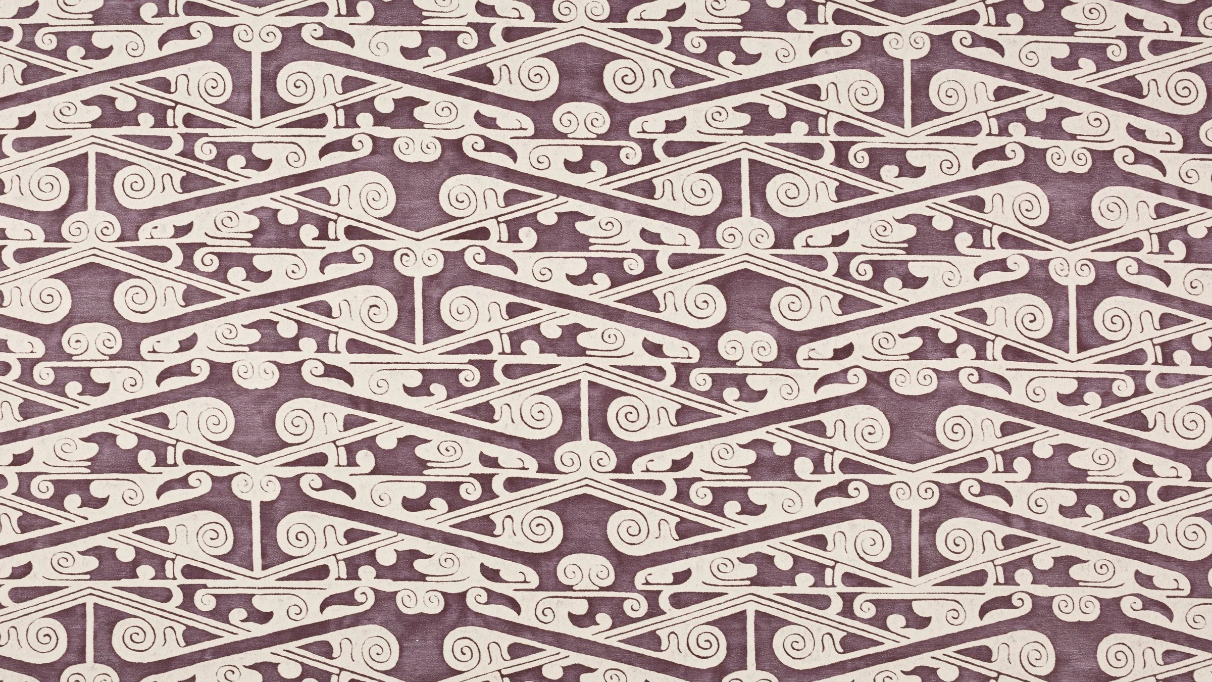 Designed in 1949, just months before Mariano Fortuny’s passing, TZIN’s pattern remains a bit of a mystery. However, the name and spiral motif suggest the Mesoamerican city of Tzintzuntzan, first excavated in the 1930s and 40s. The site's five rounded yácata pyramids were arranged in a keyhole-like shape and clad in stone slabs decorated with spirals, circles, and other petroglyphs, similar to the motifs in TZIN.