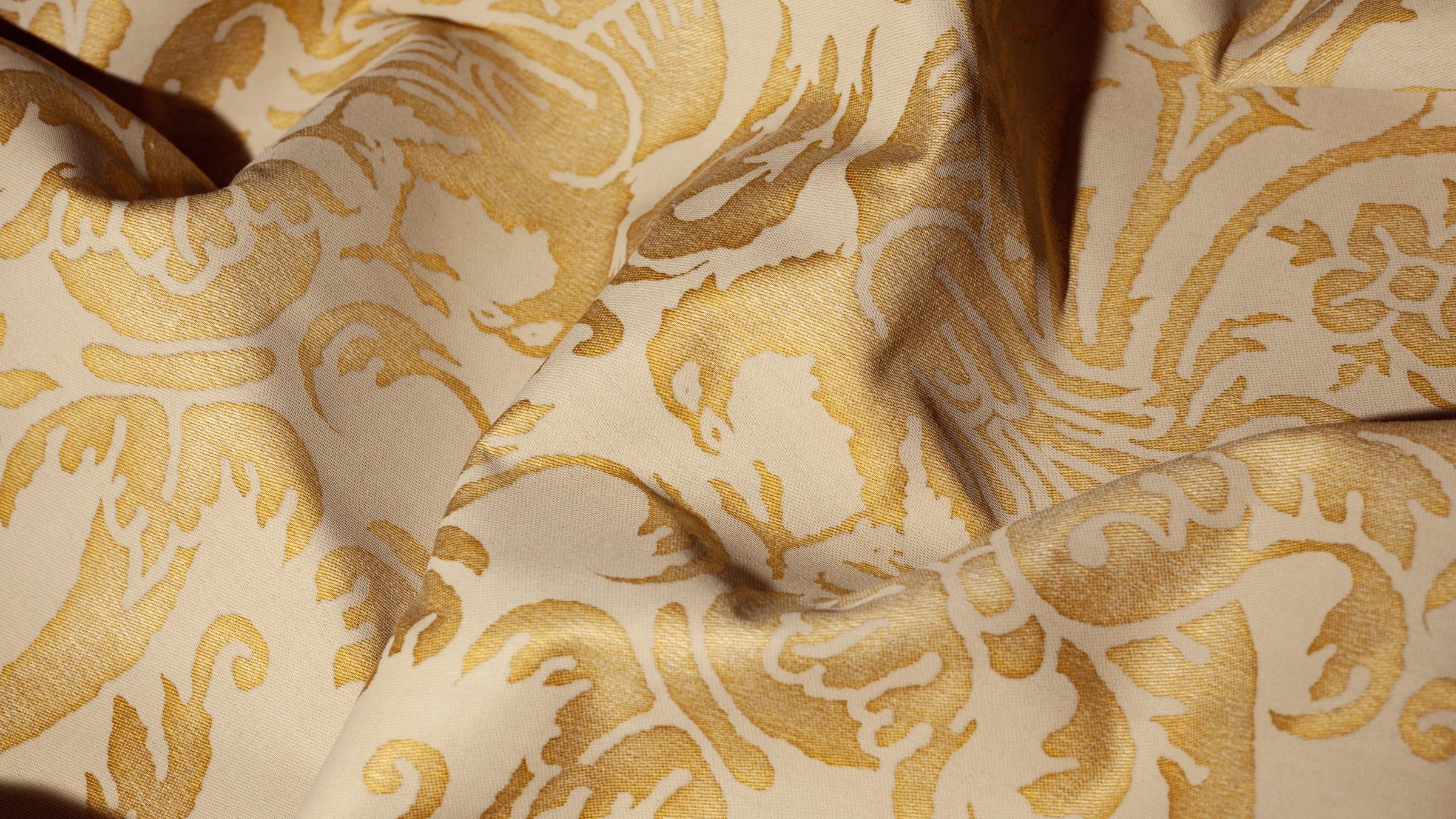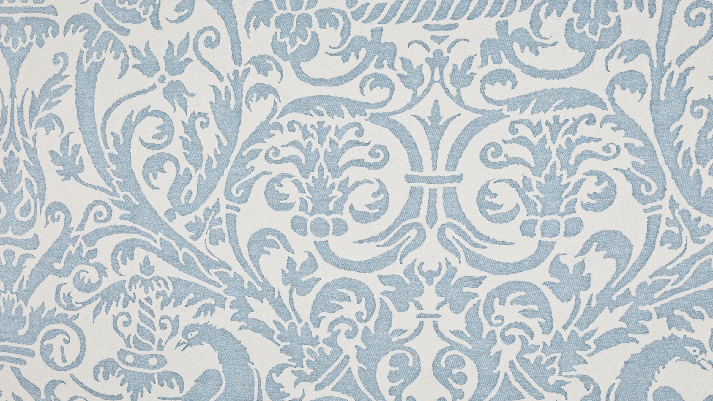 The ribbony vines and intertwining tendrils in UCCELLI, a 17th-century French design, create an elaborate aviary for this charming bird motif. From behind the flowers and foliage comes the sweet song of the wild.