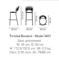 In 1998, Ditzel added a barstool version to her award-winning Trinidad series. The sliced and curved back shell provides unparalleled seating comfort. Optional seat upholstery.