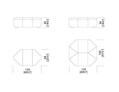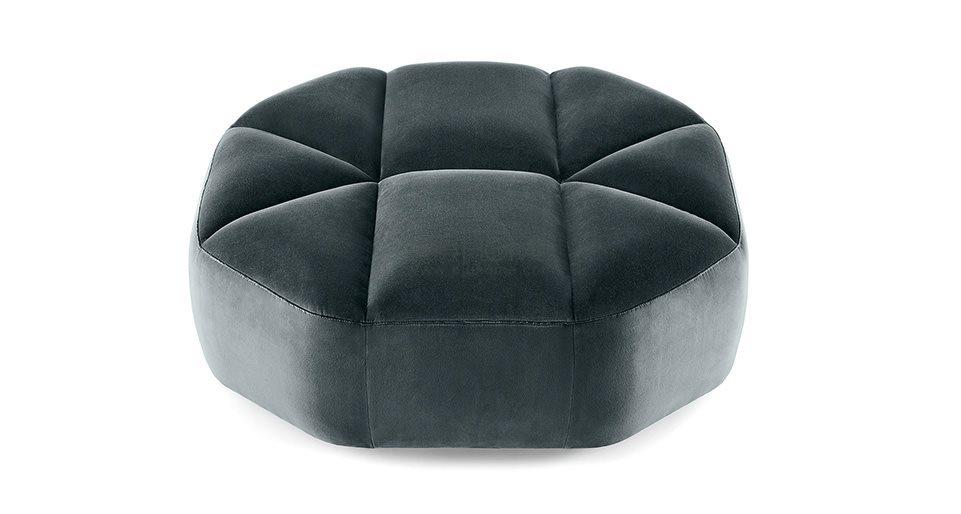 Pouffe in non-deformable foam polyurethane in different density and polyester fibre with wooden inside structure. Black lacquered wooden feet. Available covered by fabric or leather.
