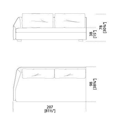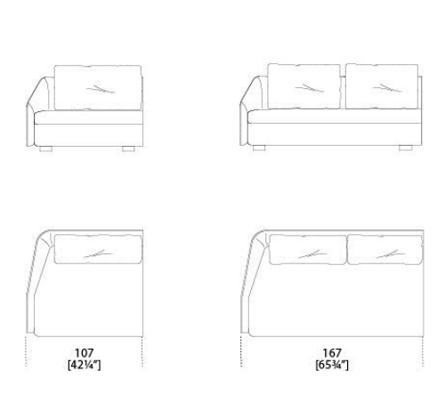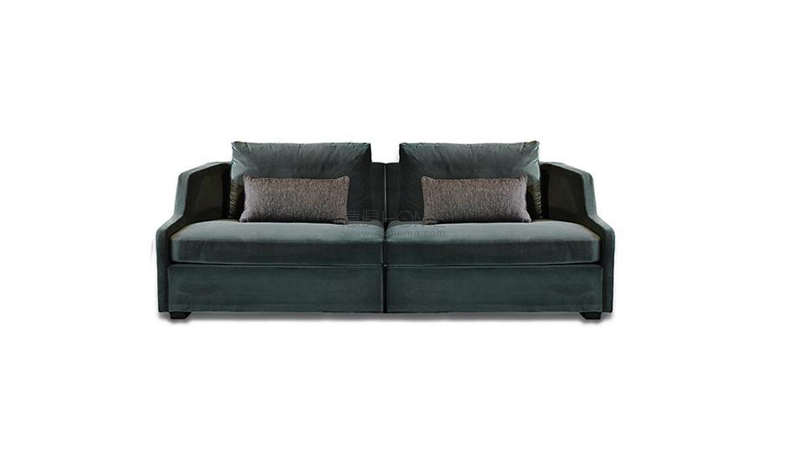 Modular sofa in non deformable foam polyurethane in different density and polyester fibre with wooden inside structure. Black lacquered wooden feet. Available covered by velvet as per samples. Decorative polyester fibre cushions, on request.