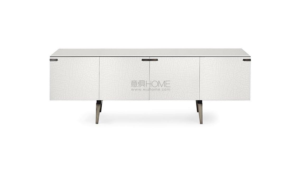 Sideboard in 8mm tempered glass covered by gold leaf applied by hand with an exclusive system. Thanks to this process the unit has an irregular and unique finish outside and a gold finish inside. Metal structure lacquered bronze color with patina. Collection in numbered edition. This finish is the result of manual oxidation and colouring of gold leaf. Possible marks and spots, as well as variations in colour, should not be considered imperfections but distinguishing features which are evidence of this hand-crafted process and enhance the beauty of a one-off piece.