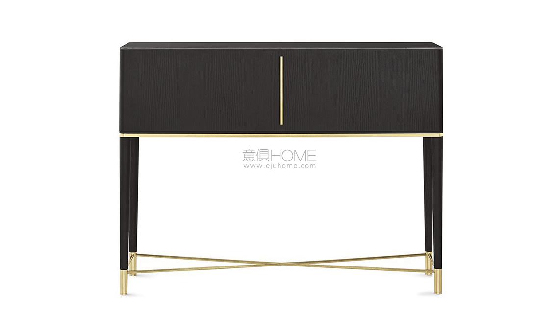Desk with flap door in black lacquered ash. Satin brass details. 6mm bright liquorice painted tempered glass top and inside back. Rhomboidal engraved pattern on the inside glass back. Writing pad and small boxes covered by Grey 058 suede.