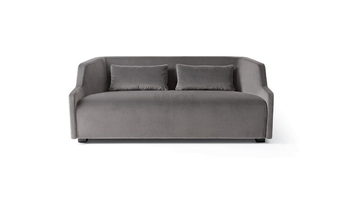 Sofa in non-deformable foam polyurethane in different density and polyester fibre with wooden inside structure. Black lacquered wooden feet. Available covered by fabric or leather. Decorative polyester fibre cushions, on request.