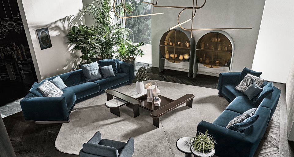Vetrina con struttura in legno laccato color “elephant grey”. Anta in cristallo 6mm temperato pigmentato color ambra. Schienale e ripiani in cristallo “Grigio Italia” 6mm temperato. Dettagli in ottone satinato.
