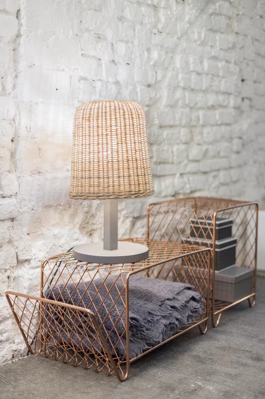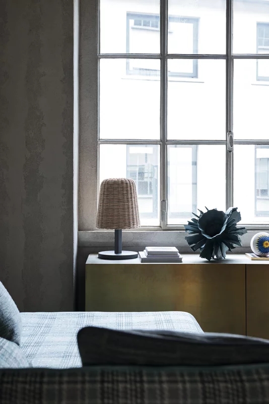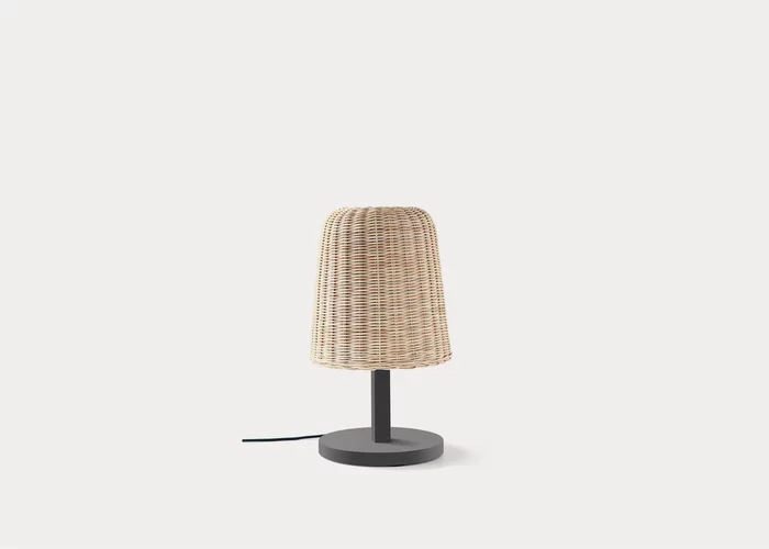 Lampada a stelo realizzata in noce Canaletto naturale, nero, bianco, grigio, oceano o tortora, con un paralume intrecciato in midollino naturale: materiali dall’estetica contrastante che danno vita ad un prodotto informale ed elegante al tempo stesso.