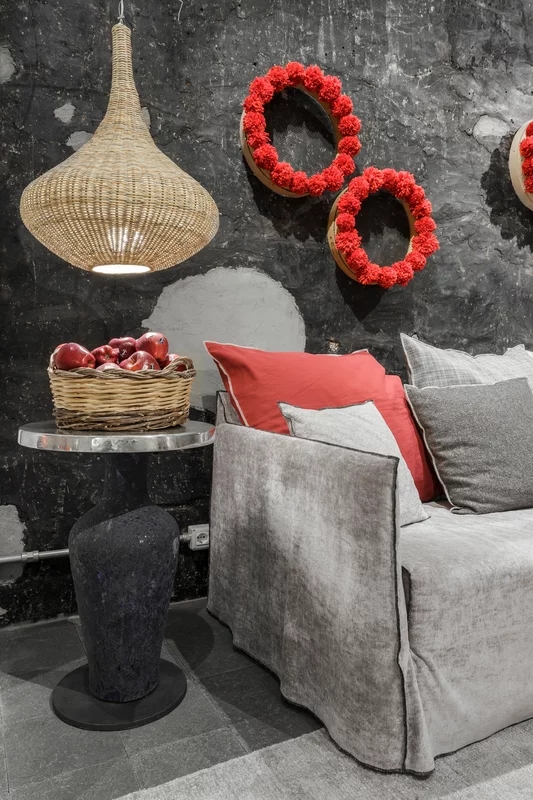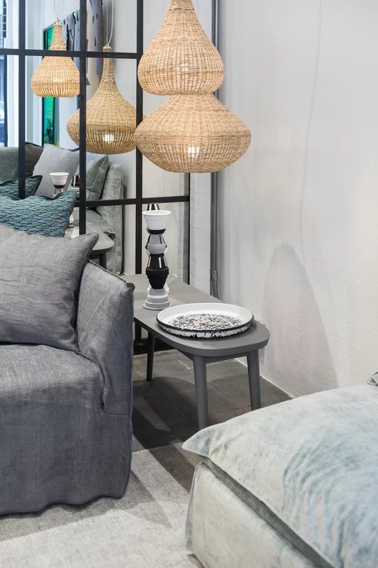 Linee sinuose che ricordano l'avvolgente forma di un nido caratterizzano la famiglia di lampade a sospensione SPIN 95/96. La struttura avvolgente a goccia è realizzata interamente in midollino intrecciato naturale, laccato bianco opaco, grigio, oceano, tortora o nero. è un prodotto in grado di creare un’atmosfera calda ed accogliente grazie alla luce che viene filtrata dall’intreccio in fibra naturale.