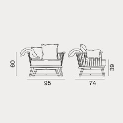 Gray 07 è una poltrona in legno il cui segno distintivo è un avvolgente schienale basso forma di semicerchio realizzato con doghe. Le gambe in legno massello si intersecano formando una croce. La struttura è realizzata in noce Canaletto verniciato naturale, rovere sbiancato o rovere laccato bianco, grigio, nero, oceano o tortora. Per un maggiore comfort un set di cuscini volanti ne accentua la morbidezza.