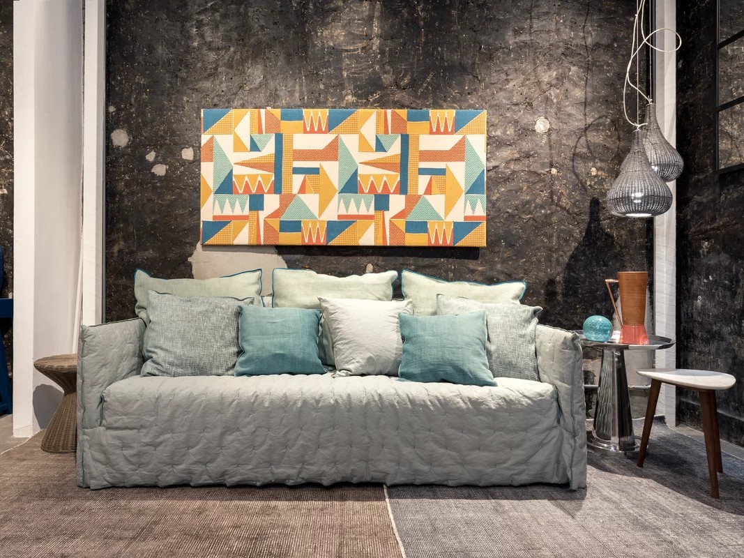 Ghost, un divano che si sviluppa attorno ad una leggera scocca dai volumi essenziali. Realizzato da una struttura minimale e sottile imbottita in poliuretano espanso, Ghost contiene soffici cuscini volanti in misto piuma. La caratteristica principale dei divani Ghost è il rivestimento sfoderabile, una housse oversize il cui profilo è sottolineato dalle cuciture a vista, che permette ai prodotti di svestirsi e rivestirsi in un baleno. Si tratta di un progetto tessile che cambia facilmente volto, permettendo di passare da un look formale ad uno informale con facilità e velocità.