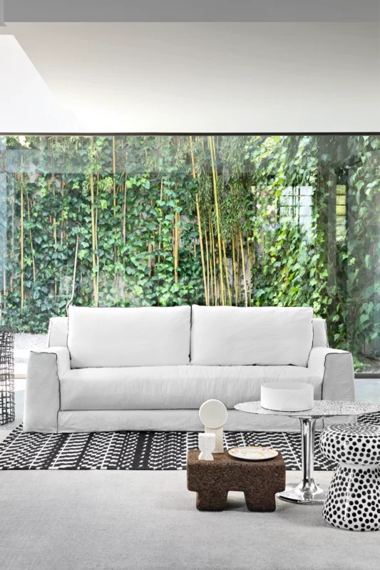 La struttura in legno massello con scocca in poliuretano espanso si unisce ad ampi cuscini di seduta e di schiena realizzati con un soffice strato di piuma d'oca canalizzata, con il recupero della tecnica tradizionale dell'uso di molle insacchettate nei cuscini seduta, per un comfort accentuato. In tutte le sue versioni, la collezione LOLL è completamente e facilmente sfoderabile.
