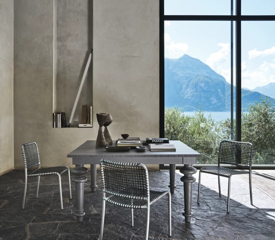 Versatile e confortevole, la famiglia di sedie Allu combina la leggerezza e l’essenzialità della struttura in tubolare d’alluminio anodizzato ad un gioco dinamico di texture, creato dall’intreccio in pergamena naturale o grigia. Capace di inserirsi in ogni ambito, dal domestico al contract, Allu è un prodotto caratterizzato da linee pulite e da forme geometriche ed essenziali, e si declina in due varianti: sedia e poltroncina con braccioli.