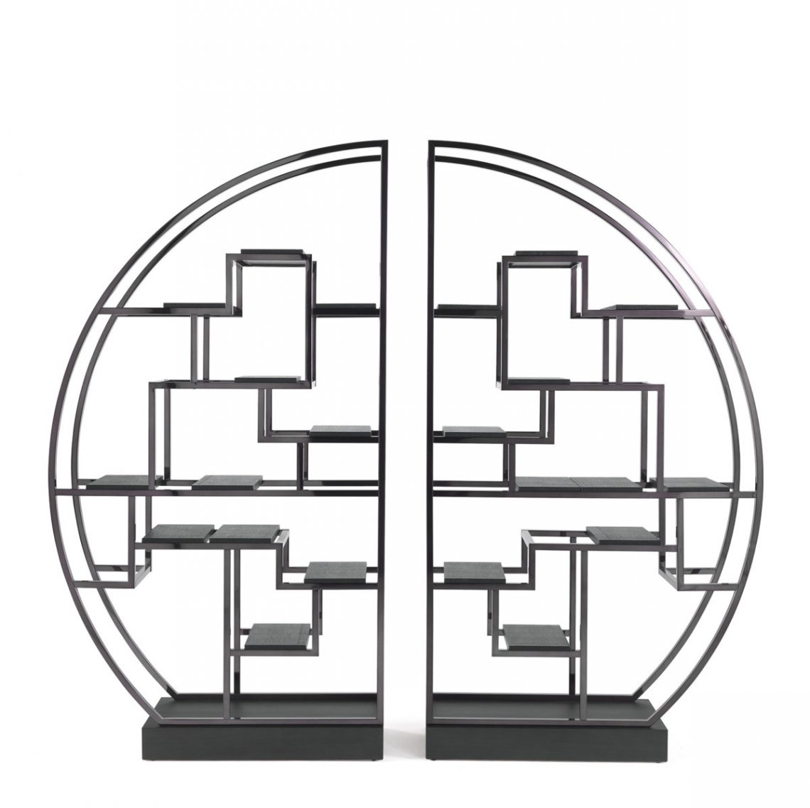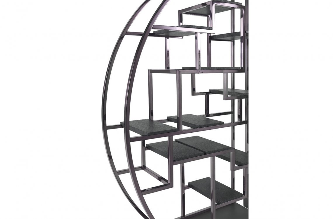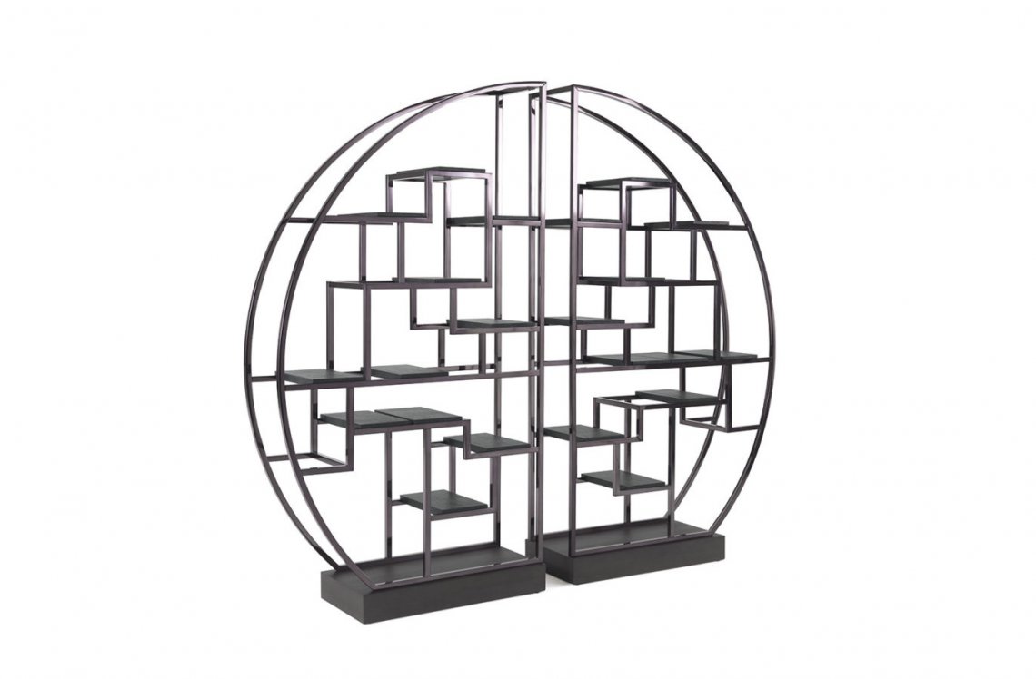 A new chrome-plated finishing for the Psyco bookcase, presented for the first time at the Salone del Mobile 2018. The original oriental inspiration that can be found in the round shape is thus enhanced by a metropolitan note giving life to a spectacular element of furniture with a contemporary and refined allure.