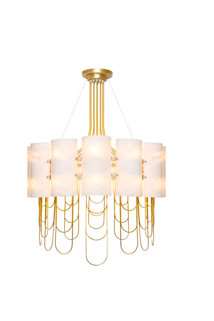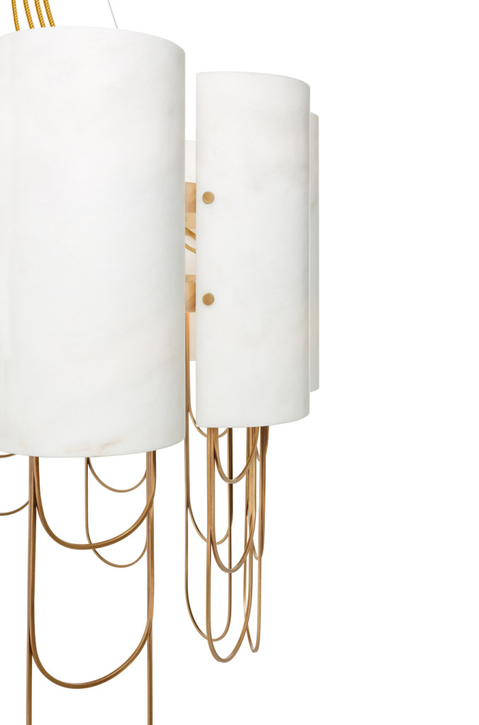 The Niagara has an evocative silhouette reminiscent of water drops. This fine handcrafted piece provides warm and cosy light through its marble shades.
