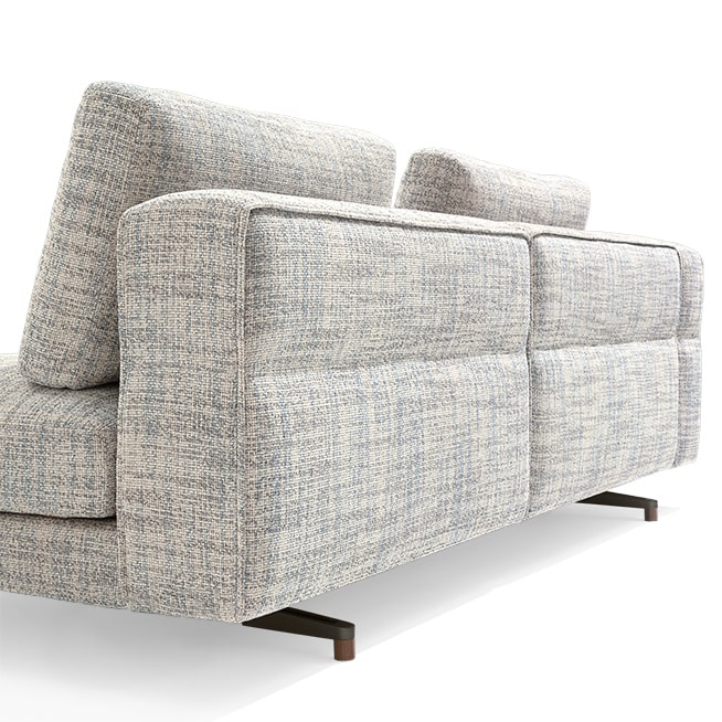 "SoHo is an extremely modern product. It is a light, airy sofa, suspended on aluminium feet. We paid careful attention to the detailing on the armrest, which extends to behind the backrest. It is a sort of modern capitonné, made with a seam that divides, embellishes and holds the armrest in place. SoHo is a versatile product which appeals to a very wide audience—I picture it in a bourgeois Milanese or Parisian apartment, or in an ultra-modern home in Miami or Los Angeles."