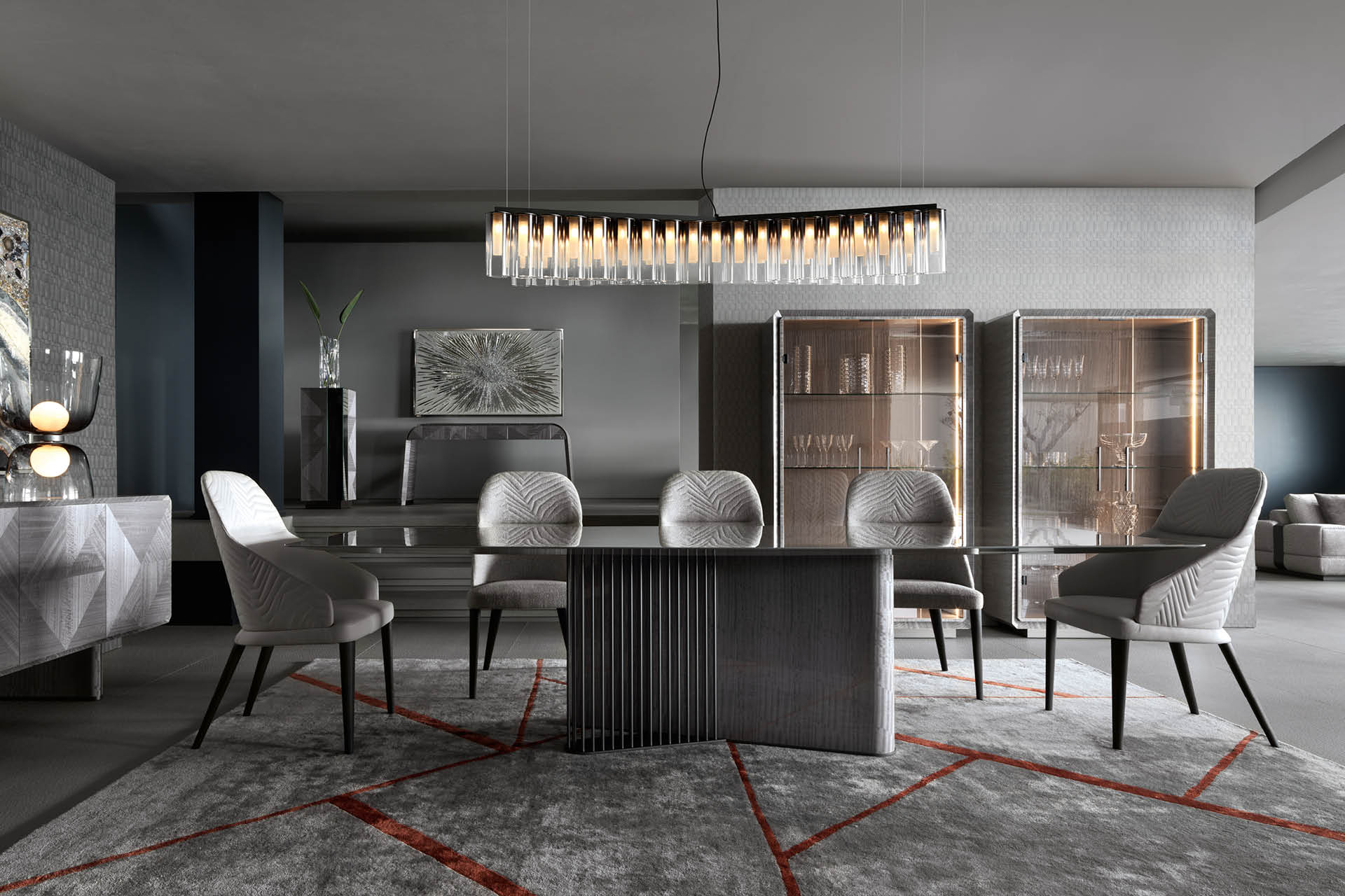 Chandelier with satin grey nickel stainless structure with 37 inserted Venetian "Murano" graded smoked blown glasses cups. Dimmerable 37 G.9 led lights, max 3W each, needed (not included).