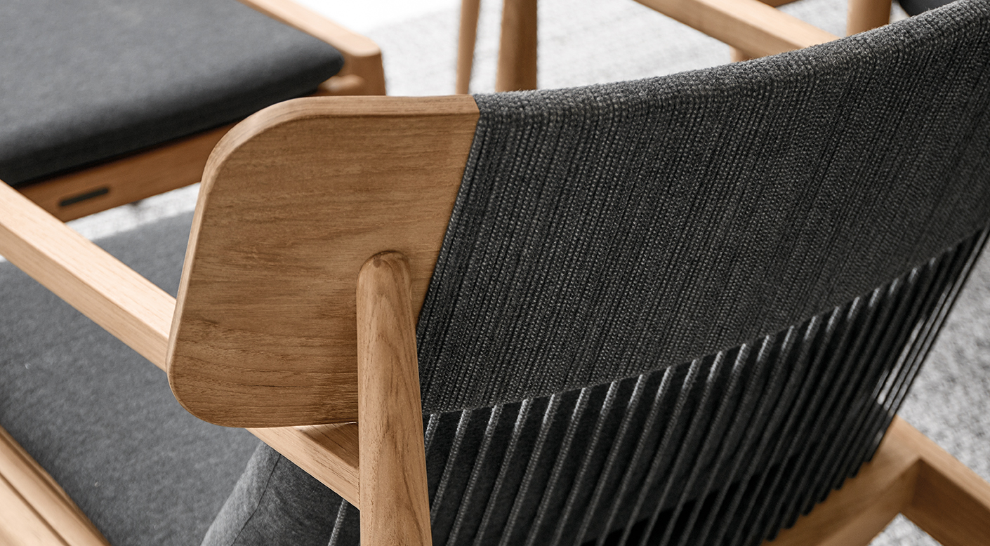 Scandinavian design meets shaker. At home in any contemporary space, this trans-Atlantic concept leaps creative boundaries, combining notes of modern architecture and a minimalist aesthetic. Cleverly combining two elemental materials - outdoor rope and plantation teak, designer Henrik Pedersen says, “the goal was to create the purest form of seating with the most traditional of materials but attain comfort and statement surpassing more opulent routes”.