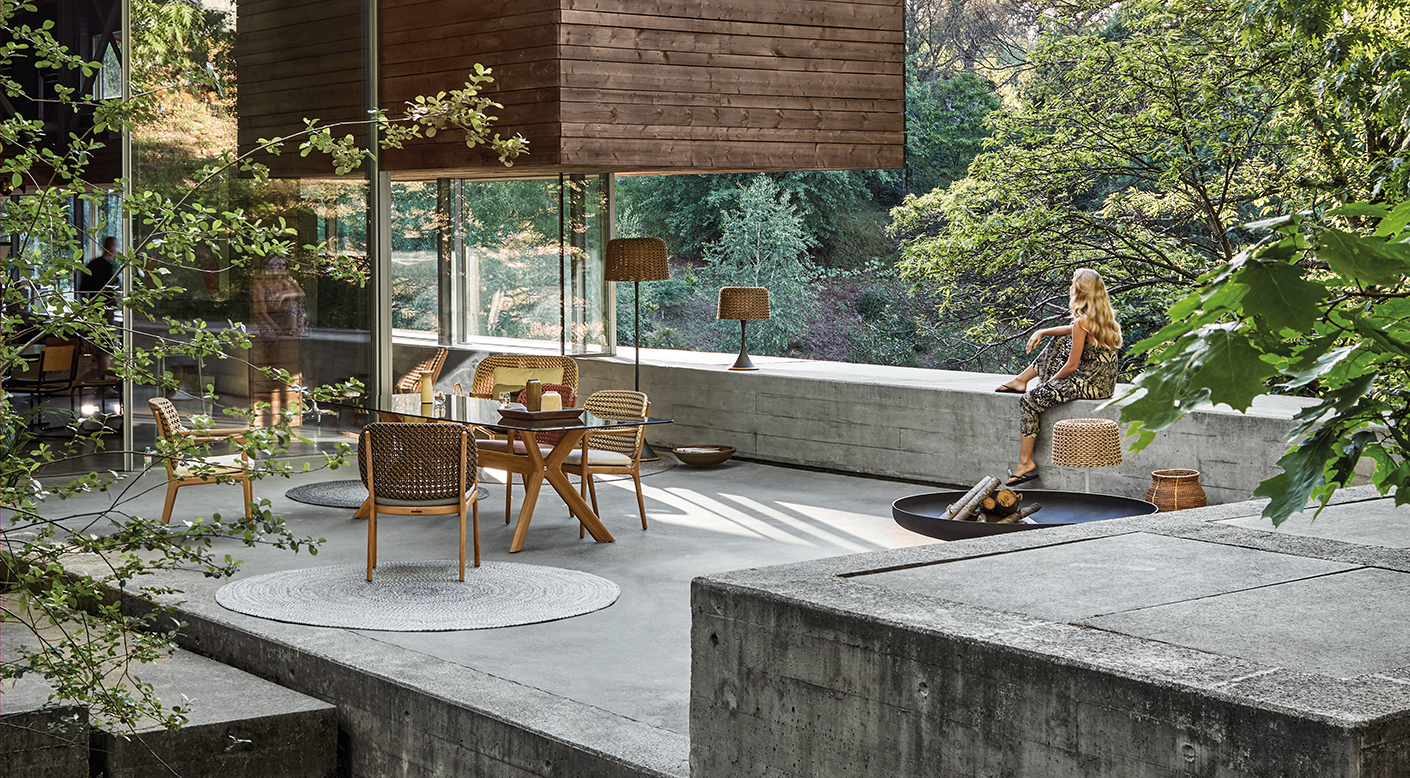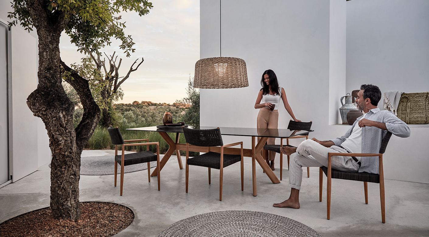 The humble table re-imagined. A place to meet, a place to eat, a place to share time, with no compromise on design. X-Frame combines a smoked, grey glass top that reveals the support below. Expertly crafted from plantation teak, this elegant yet supremely strong underframe quietly complimented by an understated top epitomises Gloster’s approach to design.