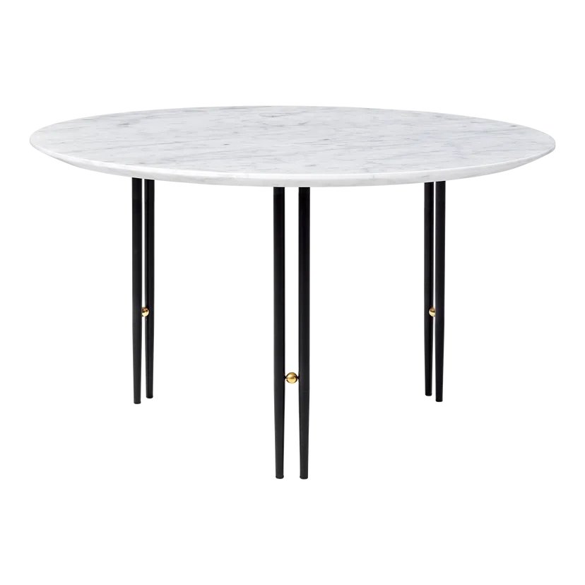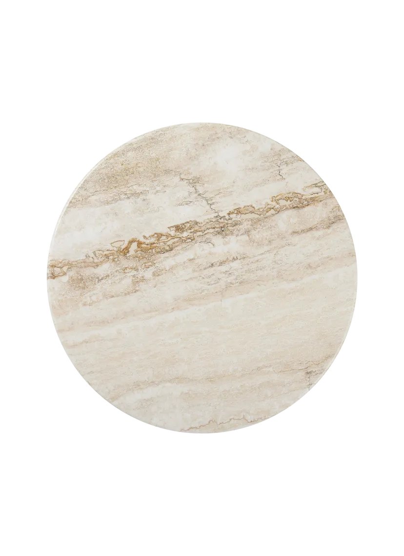 The IOI Coffee Tables by GamFratesi are a celebration of Italian materiality, featuring solid brass, steel, and now travertine. Drawing on geometric Art Deco references with a contemporary design language, the collection explores the empty space between the physical form as much as the form itself. Striking and unique, the IOI Collection takes its name from the structure of the table legs, each of which is formed from twin metal tubes linked by a sphere of brass the letters I-O-I rendered in physical form. Retaining this slender base, in black or chrome options, GUBI’s new edition introduces a new material and color to the circular tabletop travertine in Rippled Beige and refines its shape.
