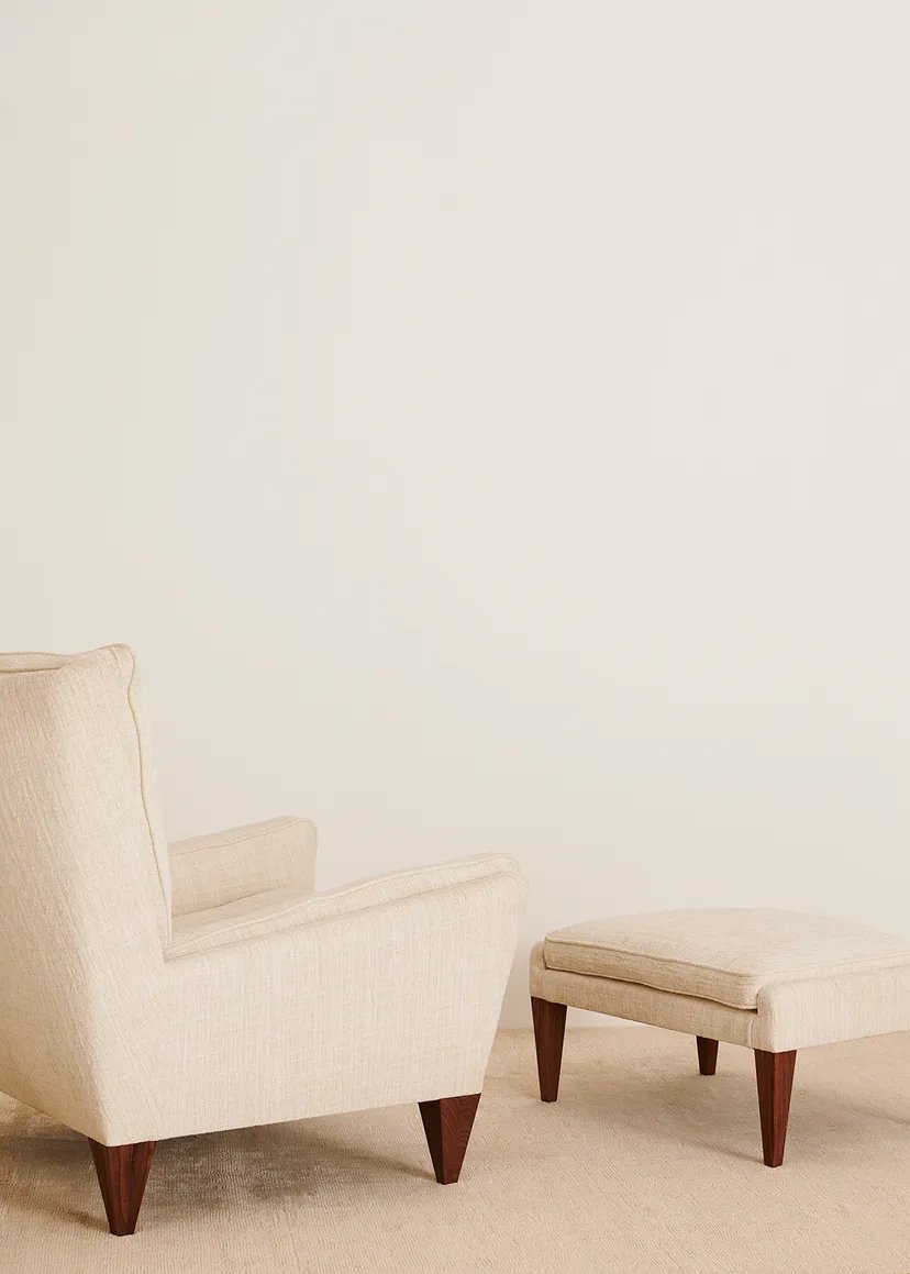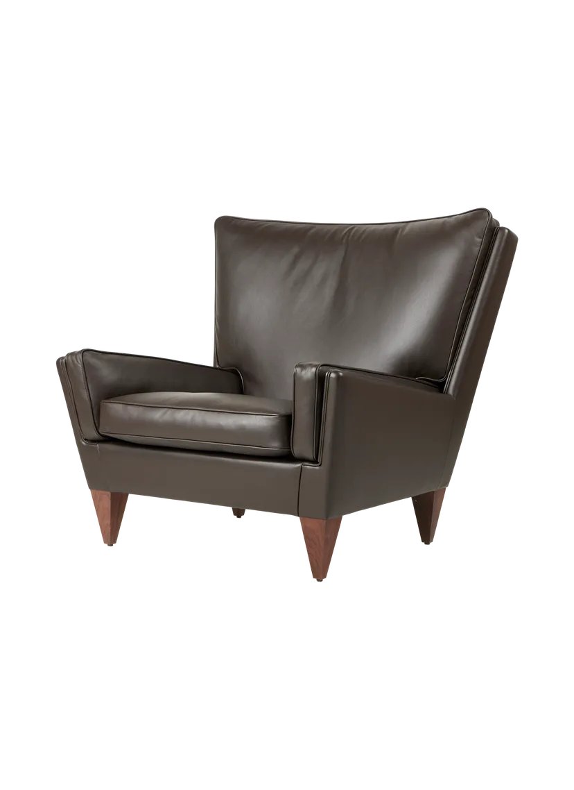 First designed in 1965, the V11 Lounge Chair is one of the most revered and highly sought-after seating designs by the leading 20th-century Danish designer Illum Wikkels?. Like GUBI’s other Wikkels? design, the V11 is exemplary in craftsmanship and distinctive in form, with an angular trapezoidal body echoed in its signature inverted- pyramid legs in solid wood. Despite these seemingly sharp angles, the V11 is crafted for comfort, exemplifying Wikkels?’s belief that chairs should accommodate a variety of seating positions. Painstakingly recreated by GUBI using a process of 3D scanning, the V11 family includes a lounge chair and accompanying ottoman, both FSC? certified (FSC?-C176589), and available with an extensive choice of upholstery options, demonstrating the design’s aesthetic versatility.