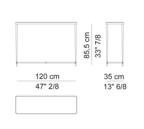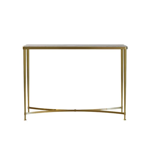 Consolle with built-in top in polyester-painted marble. Satin brass structure.