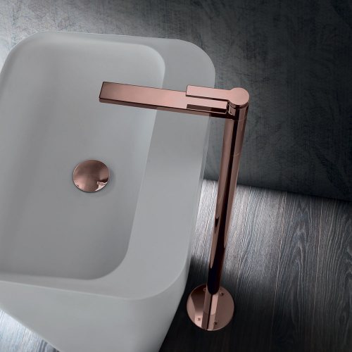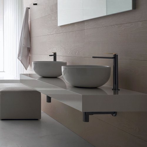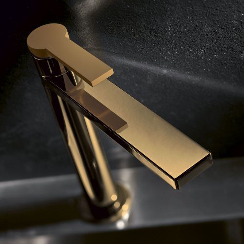 Macò is a line of brass mixers for bathrooms. It is proposed in the single-lever and single-hole version but the different components included in the series make it customizable up to two holes.