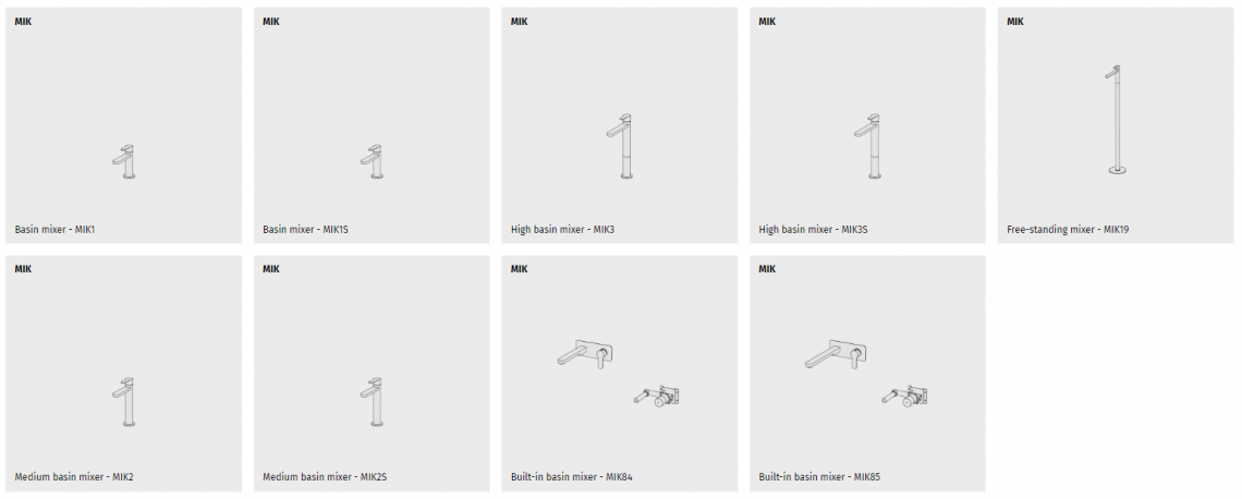 Mik is a series of brass mixers for bathrooms. Available in single-hole and single-lever version and with different heights and spout lengths, for recessed and high washbasins.