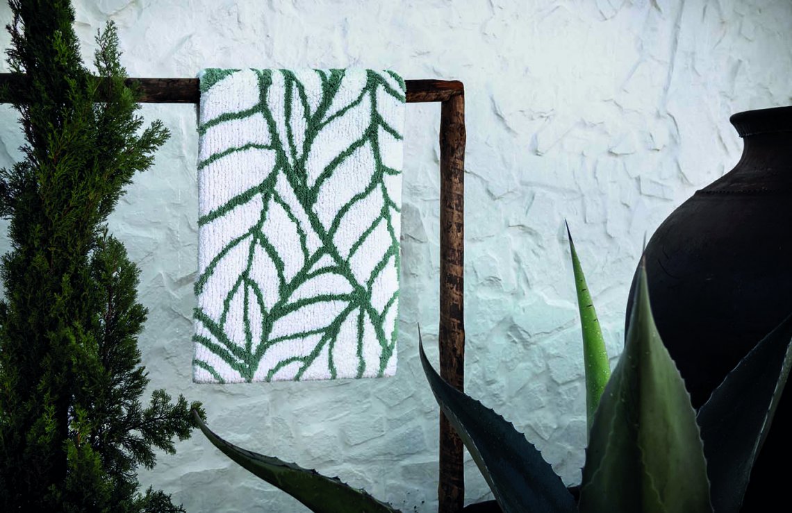 LEAVES BATH RUG 葉地毯,這款地毯采用最優質的棉纖維制成,自首次使用以來就有著極佳的柔軟度和令人難以置信的吸水性。Graccioza 的地毯產于葡萄牙,經過預洗以提高吸水性,并預縮水以減少縮水。這款浴毯經過防起球處理,毛皮更密實,使用后不會褪色。