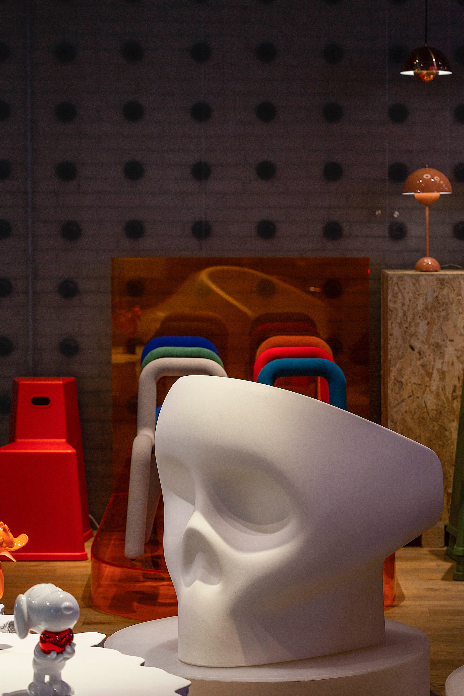 The seat, designed by Fabio Novembre, is the first Gufram project in roto-moulded plastic, thus suitable also for the outdoors, as well as the first not to have a soft part of polyurethane, which has always been part if its DNA.