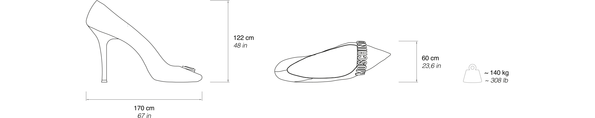 Irony, humour, and provocation are the elements that represent the stylistic figure of the two brands that, in design as well as fashion, have been able to promote in the world the radicalness of Italian creativity and have become icons of an explosive Made in Italy energy. Biker Cabinet and High Heels affirm Gufram’s desire to play with dimensions, making surreal outsized items the distinctive trait of its design. For the first time Moschino’s creations become interior design objects: the two brands reiterate their innovative attitude to go beyond form-function associations with imagination and non-conformism.