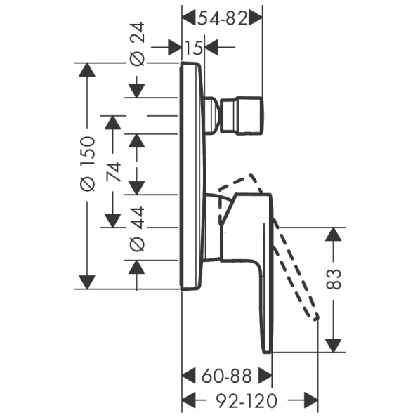 flow rate for bath spout at 3 bar: 22,5 l/min