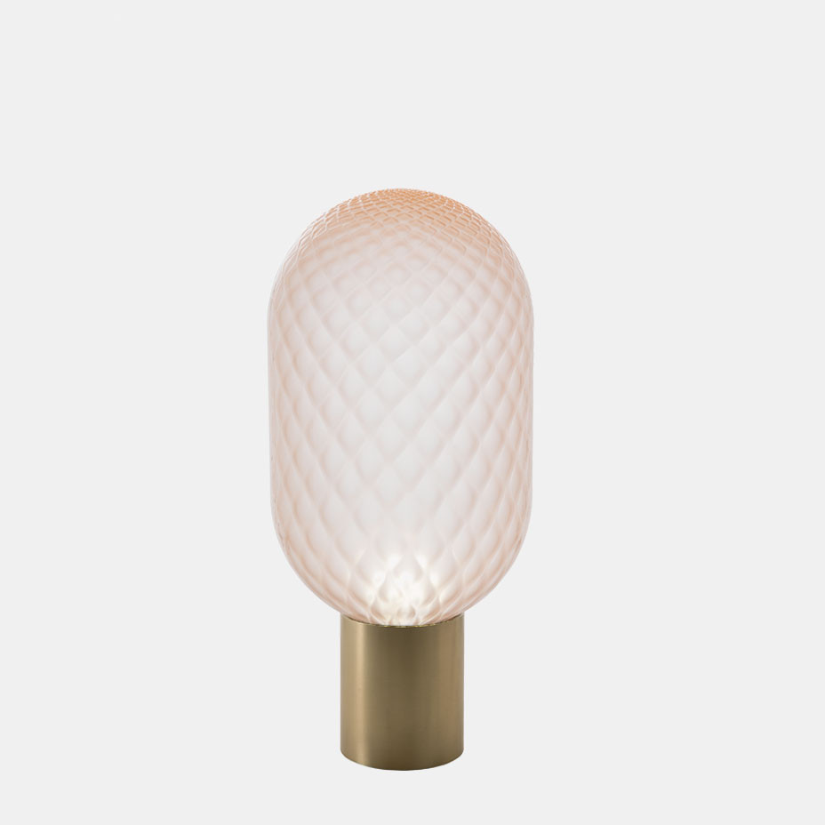 ricorda la preziosità delle bottiglie di profumo antiche e la forma dei diffusori orientali di essenze. A seconda del vetro e della fonte luminosa prescelta, l’effetto può essere più ovattato o sensuale. La magia dell’oggetto si sprigiona sia dal pezzo singolo che dalla combinazioni di più varianti. La linea si compone di lampade a sospensione e da tavolo disponibili sia con luce a LED che alogena. Il vetro è grigio (G) o rosa (P) con lavorazione Balloton anche in versione satinata (S).