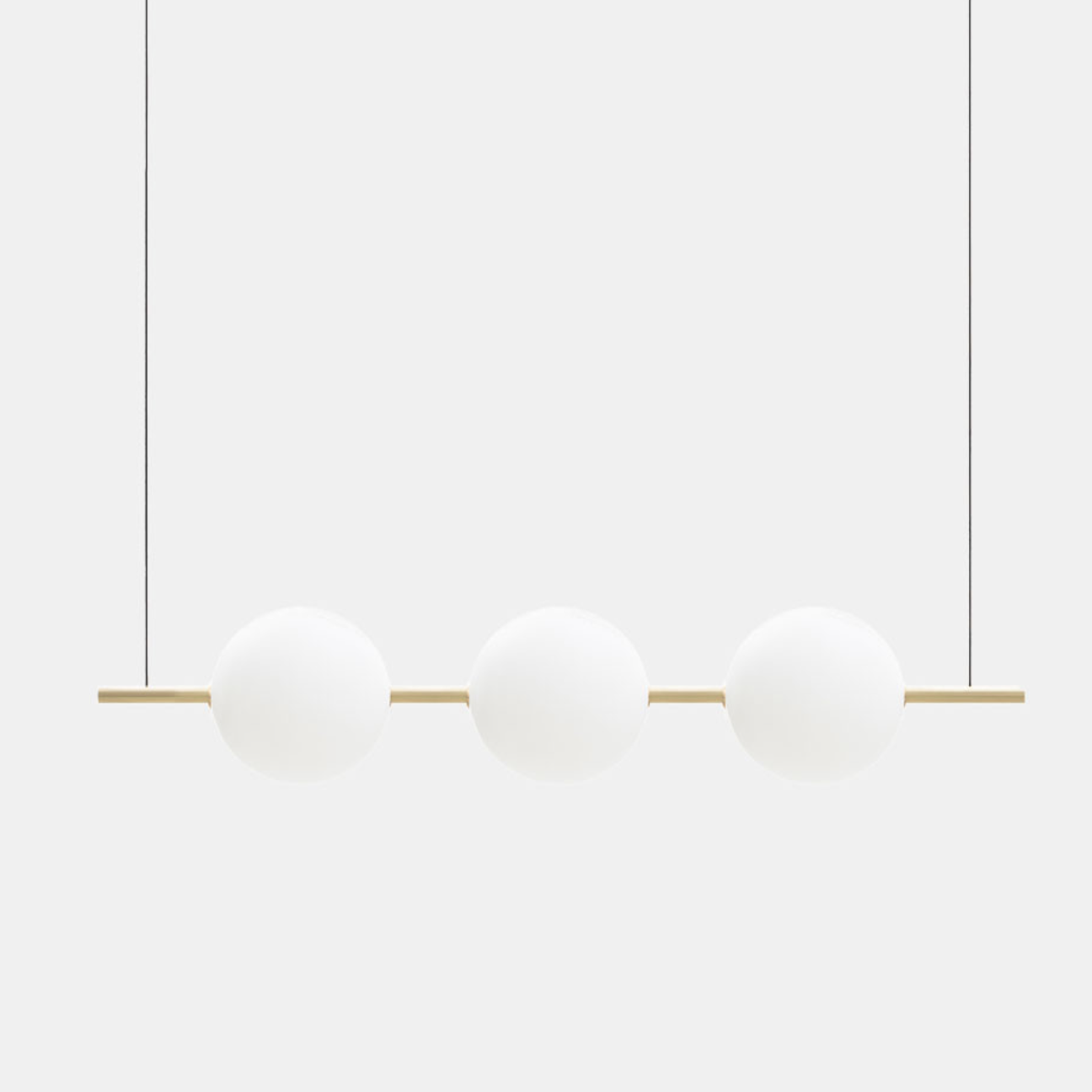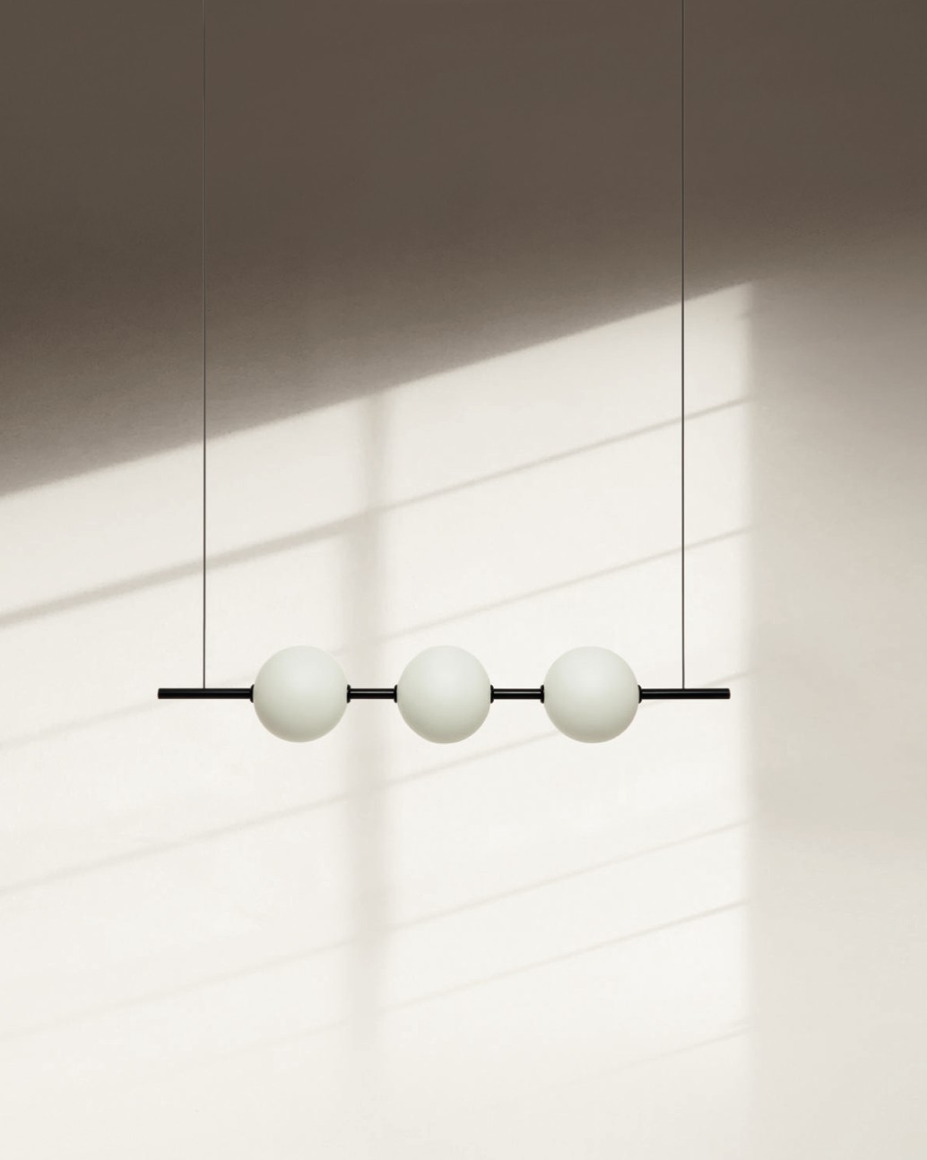 Suggestiva fusione di vetro e ottone, ALMA si inserisce con discrezione in ambienti contemporanei lasciando un segno di luce intenso dato dalla fonte luminosa a led dimmerabile. La geometria bilanciata conferisce un senso di stabilità alleggerito dalle sfere luminose sospese. Il risultato finale è un oggetto iconico con un’aura immateriale. ALMA è disponibile con finitura ottone spazzolato (cod. ON) e nero (cod. NN) in 5 modelli a sospensione.