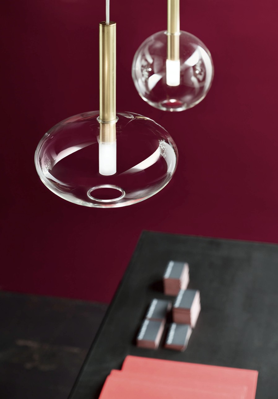 Un gioco di proporzioni ed accostamenti, di dimensioni, di materiali e di forme che danno vita a lampade in ottone naturale (ONT) o anticato (OOT) e vetro trasparente, delicate e raffinate. Una famiglia di lampade da comporre per rendere unico un ambiente, generando uno spazio nello spazio: il risultato finale è appunto una questione di alchimia.