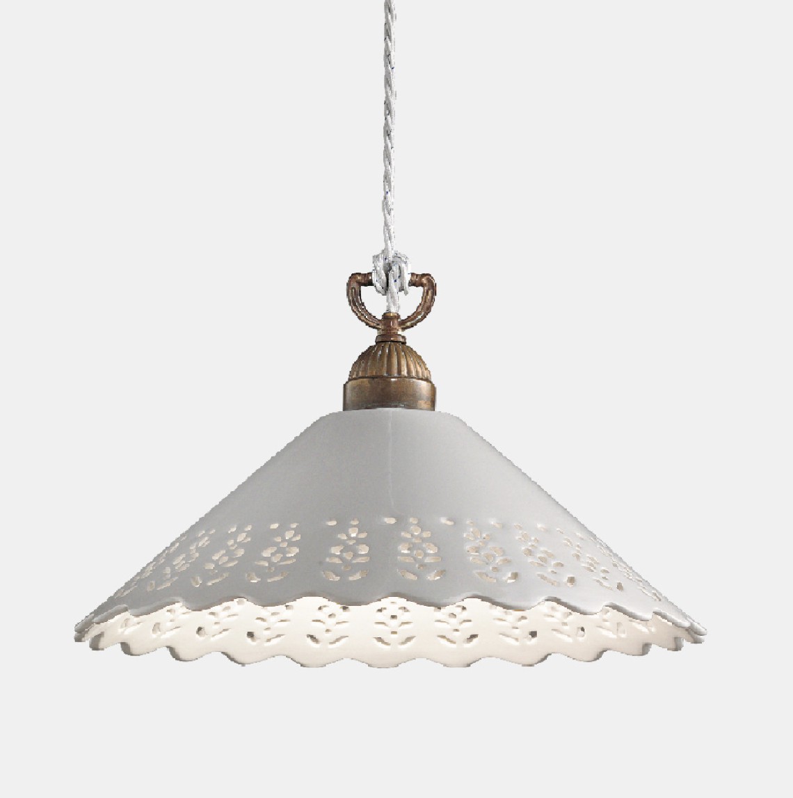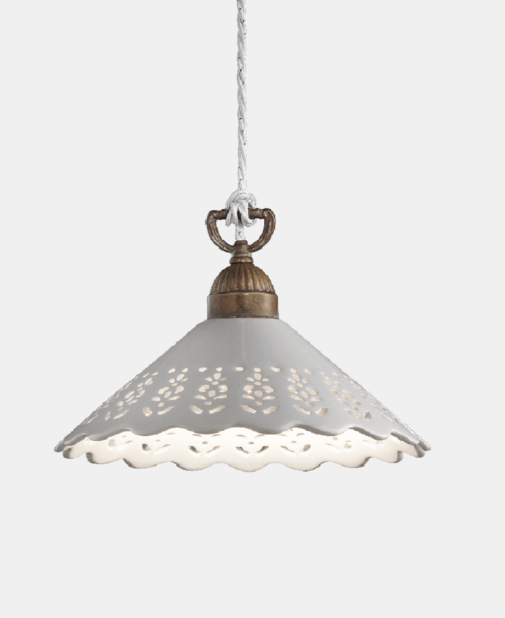 I ricami sapientemente traforati sulle preziose ceramiche di Bassano conferiscono un grande valore estetico alle lampade della collezione Fiori di Pizzo, emblemi di un classicismo rivisitato in chiave moderna. La ricercata lavorazione consente, in fase di illuminazione, la creazione di giochi di luce sulle pareti proiettando fiori e decori.