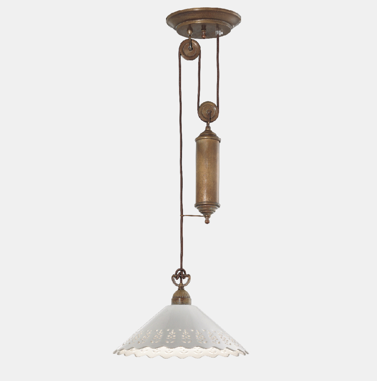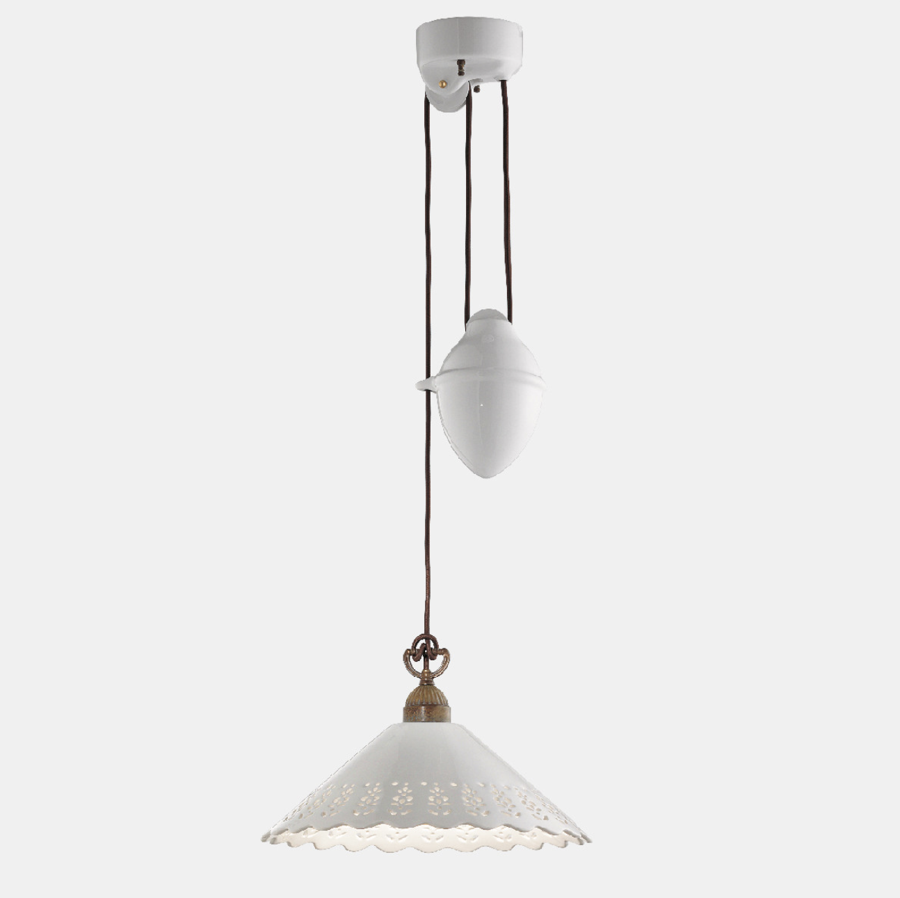 I ricami sapientemente traforati sulle preziose ceramiche di Bassano conferiscono un grande valore estetico alle lampade della collezione Fiori di Pizzo, emblemi di un classicismo rivisitato in chiave moderna. La ricercata lavorazione consente, in fase di illuminazione, la creazione di giochi di luce sulle pareti proiettando fiori e decori.